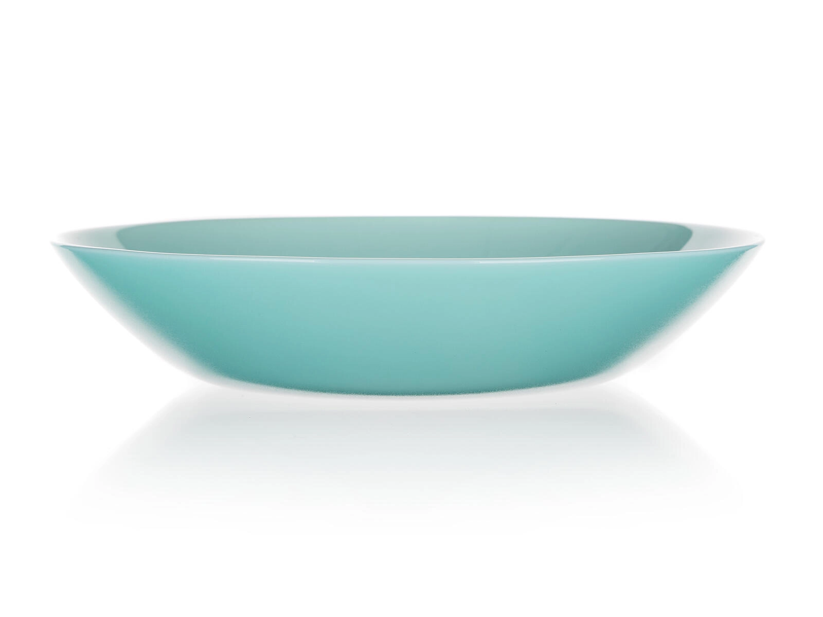 Leder du efter en praktisk og stilfuld tallerken til daglig brug? Den dybe DIWALI-tallerken i hærdet glas i turkis forener moderne design med høj holdbarhed og nem vedligeholdelse. Takket være den ikke-porøse overflade modvirkes bakterietilvækst, og maden holdes varm længere.