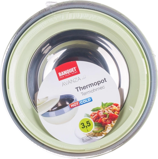 Termoskålen AVANZA 3,5 l er ideel til både servering og transport af færdige retter. Den indvendige indsats i rustfrit stål og dobbeltvæg med PUR-fyld holder på temperaturen, så supper, saucer og tilbehør forbliver varme og friske i længere tid. Det solide låg med håndtag er let at sætte på og tage af.