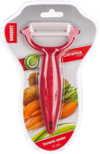 Den keramiske Y-skræller er en fremragende hjælper i ethvert køkken. Den hvide keramiske klinge af zirkoniumdioxid (bredde 4 cm, tykkelse 0,8 mm) bevarer sin ekstraordinære skarphed og er skånsom mod råvarerne, så den bevarer vitaminer og enzymer. Takket være den lette konstruktion og det behagelige plastgreb er den nem og præcis at arbejde med.