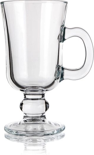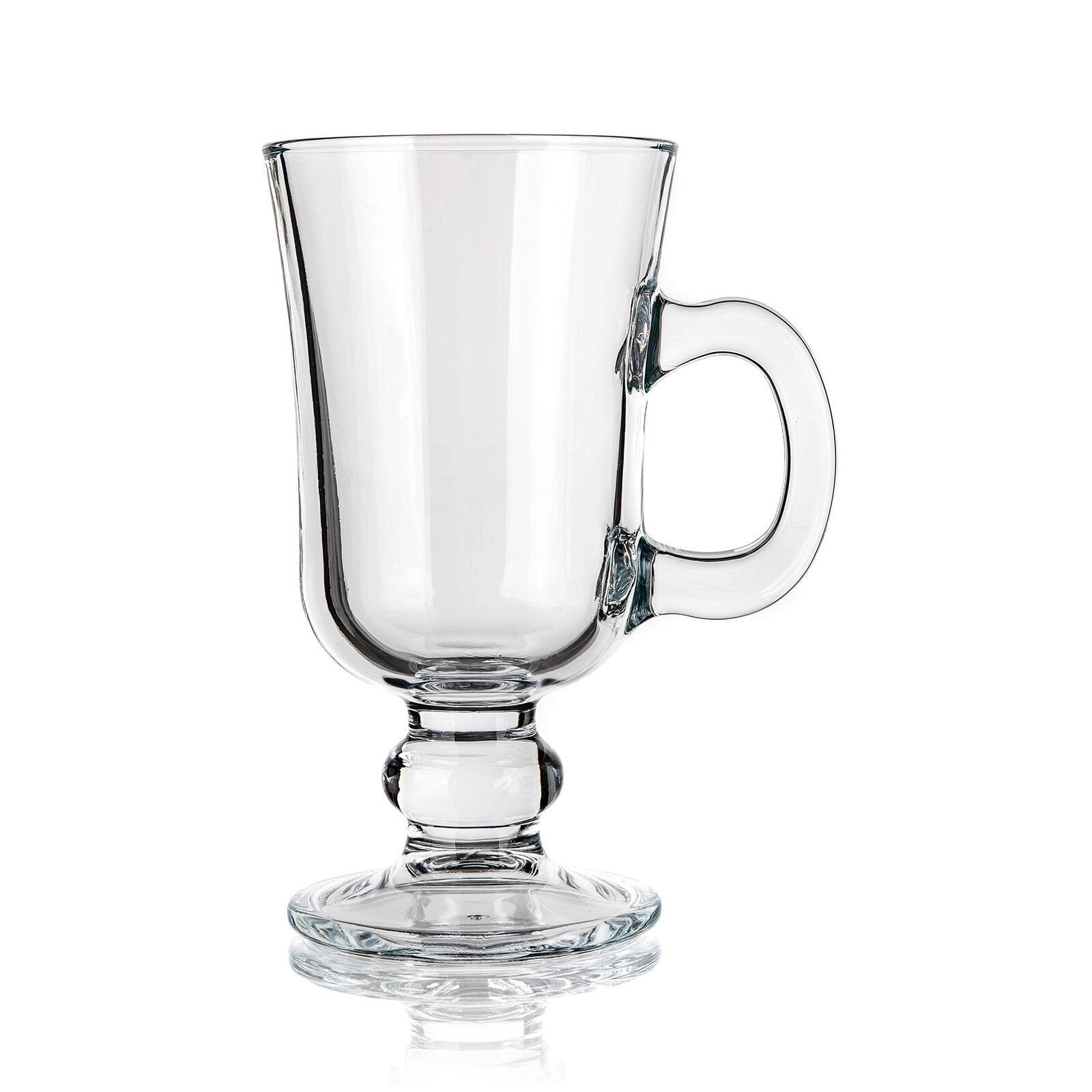 Forkæl dig selv med stilfuld servering af varme og kolde drikke. Irish coffee-glas med praktisk hank og stabil fod er lavet af klart glas, som lader farver og lag i latte, kakao eller te træde frem. Takket være den behagelige hank ligger glasset godt i hånden og kan bæres sikkert.