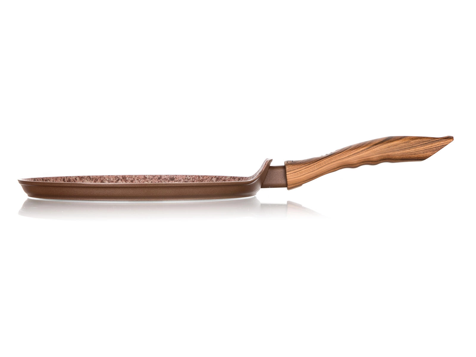 Let og holdbar pandekagepande med en diameter på 24 cm og Smart Stone Brick-overflade, som sikrer jævn gennemstegning, nem vending og minimal fastbrænding. Takket være den nonstick dobbeltlagsbelægning, det induktionskompatible bundlag og det ergonomiske soft touch-håndtag er den ideel til daglig tilberedning af pandekager, små pandekager og tortillas.