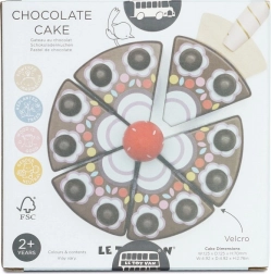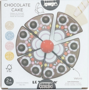 Den stilfulde chokoladekage fra Honeybake-kollektionen er ideel til legekøkkenet eller konditoriet. Seks solide stykker forbundet med velcro kan nemt skæres over med den medfølgende serveringsspade og deles mellem venner – en oplagt mulighed for at træne deling og sociale færdigheder.
