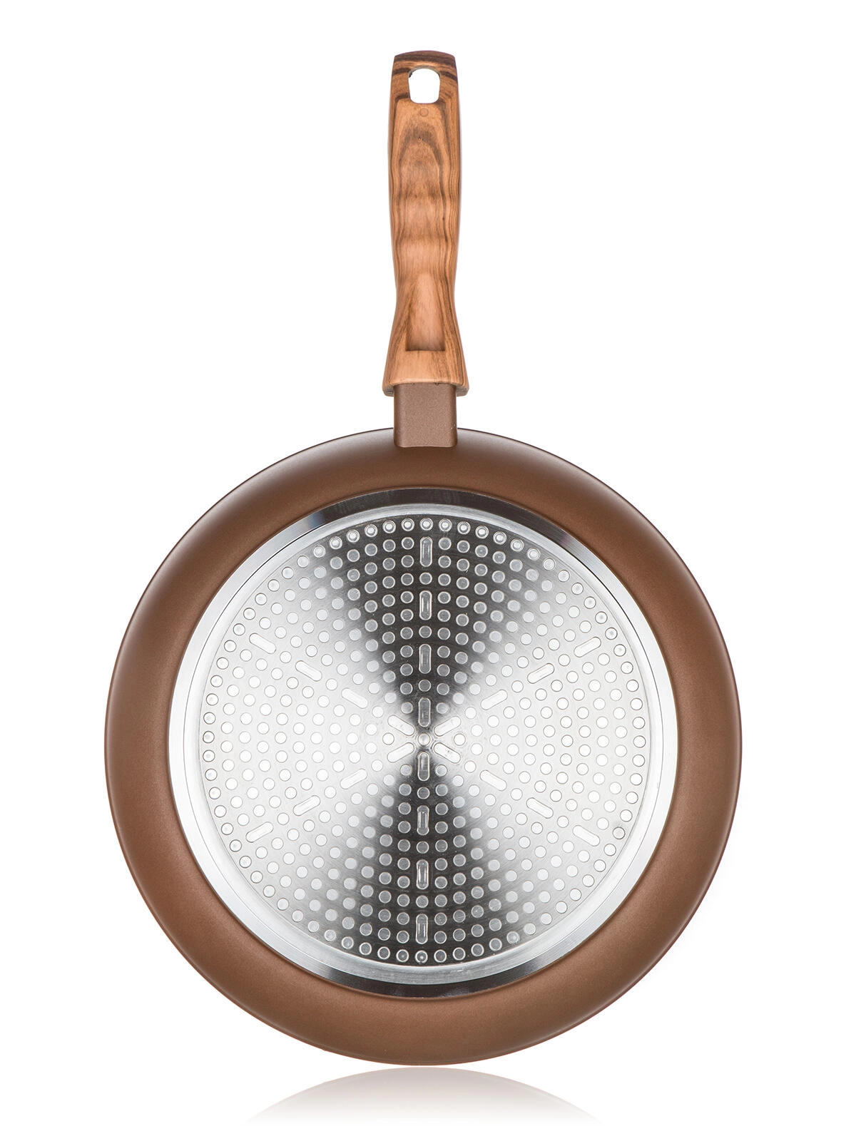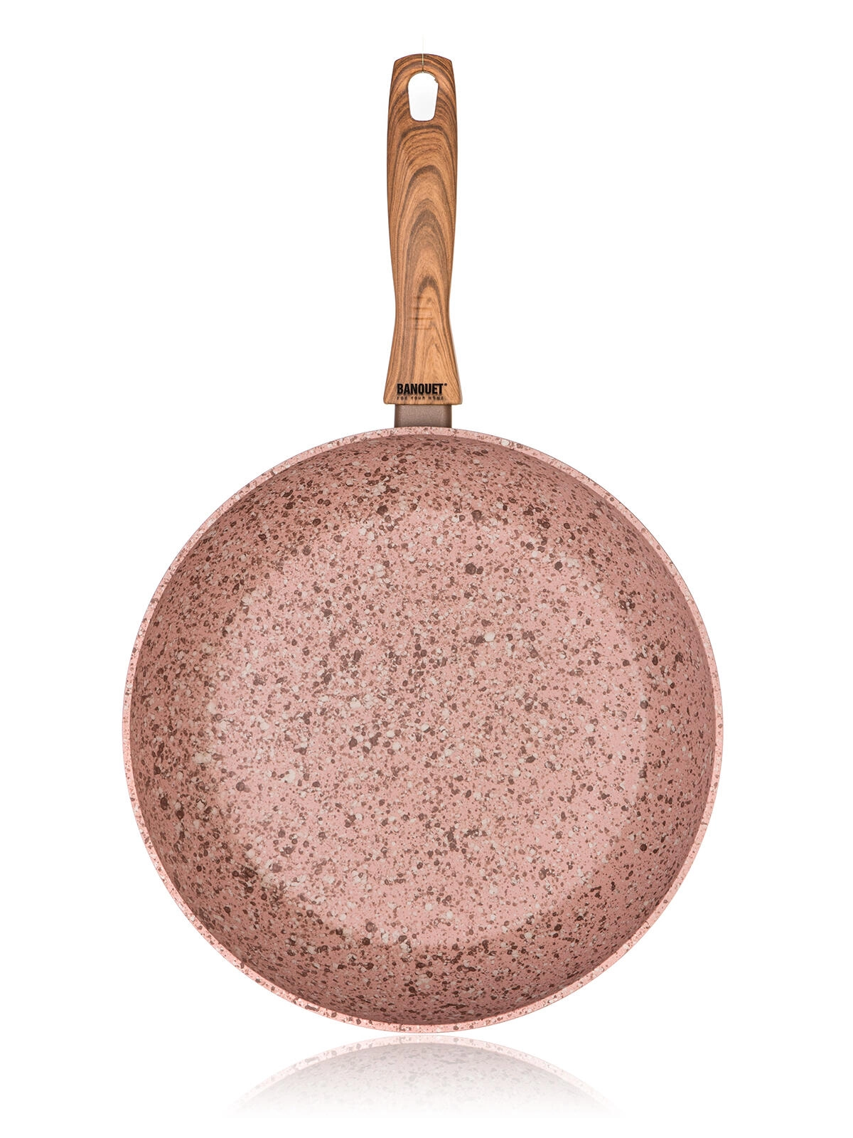 Universalpande med en diameter på 28 cm med dobbeltlags non-stick belægning i stenstruktur til sund madlavning med et minimum af fedt. Det smedede aluminiumskorpus sikrer hurtig og jævn varmefordeling, induktionsbund giver bred kompatibilitet, og ergonomisk håndtag med soft touch i trælook er behageligt og sikkert at holde på.