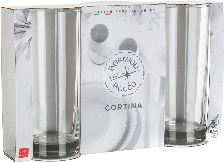 Elegante og holdbare CORTINA-glas 385 ml i en praktisk pakke med 3 stk. er ideelle til servering af vand, lemonader og long drinks. Takket være det klare glas, de afbalancerede proportioner og den universelle form passer de til enhver husholdning og til det festlige bord.