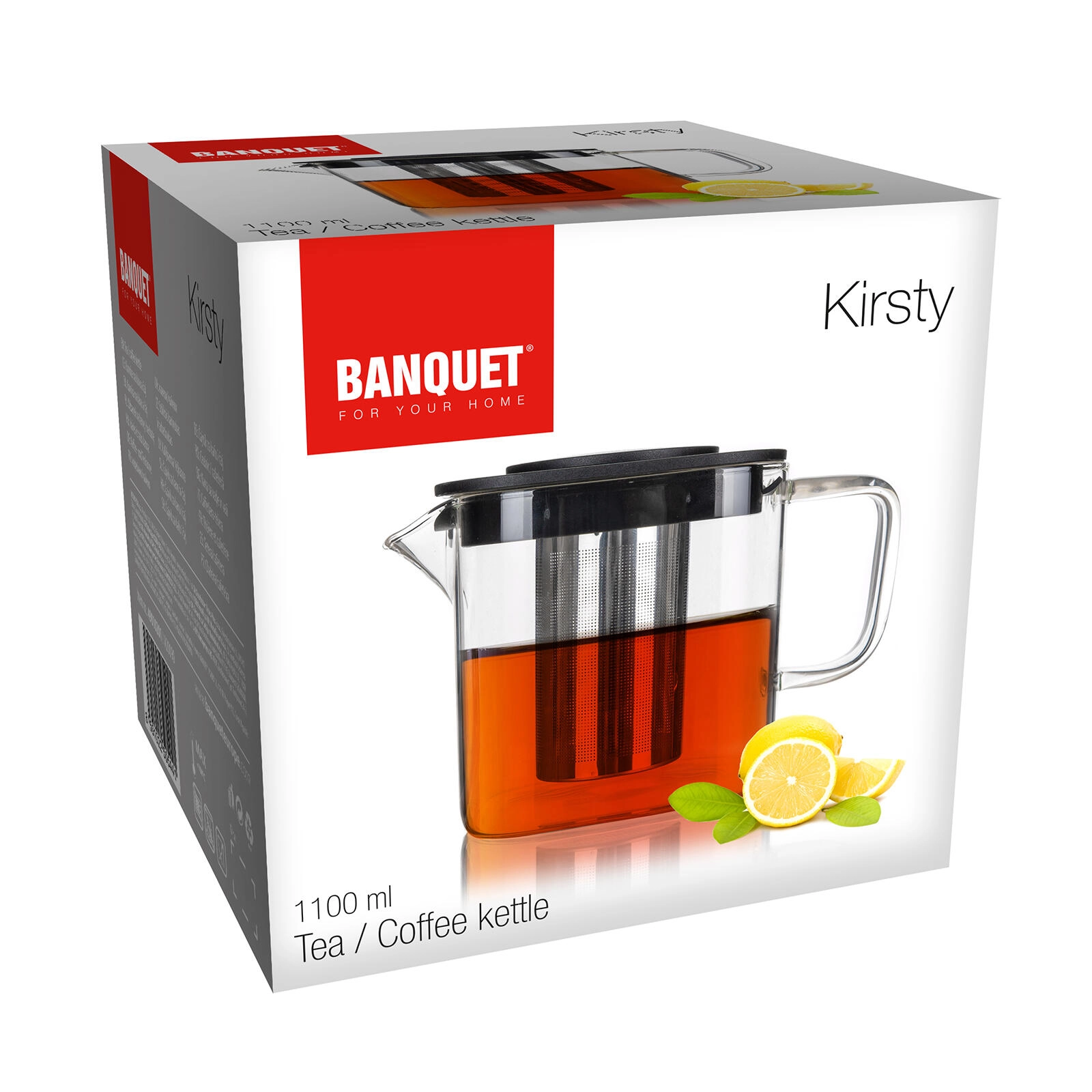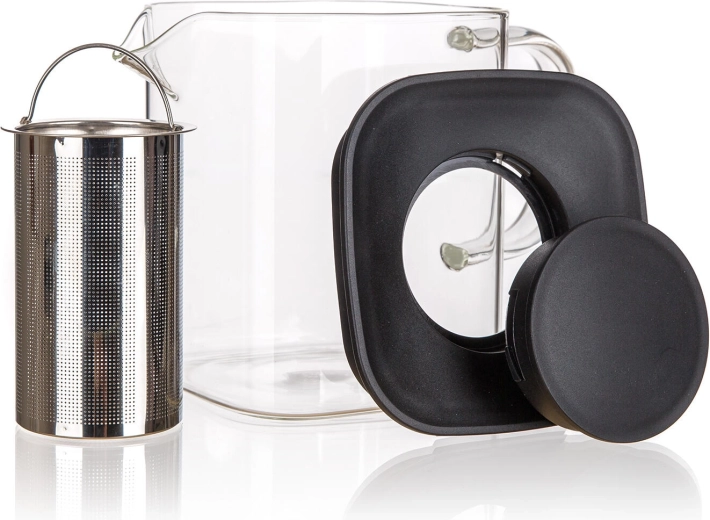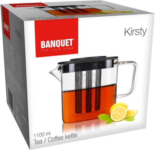 Den elegante glaskande KIRSTY med en kapacitet på 1,1 l og integreret filter i rustfrit stål er ideel til tilberedning af løse teer, kaffe og hjemmelavede lemonader. Det minimalistiske firkantede design, varmebestandigt glas op til 100 °C og det fine filter i rustfrit stål sikrer en ren drik uden blade. Praktisk låg og behageligt glas-håndtag for sikker servering.