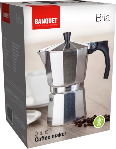 Oplev klassikeren blandt moka-kander – Bria kaffemaskinen med en kapacitet på 400 ml til cirka 9 kopper aromatisk, stærk kaffe. Takket være aluminiumskroppen får den efter nogle ganges brug en naturlig patina, som fremhæver den fyldige smag og duft af espressokaffe fra en moka-kande.