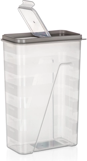 Skab orden i spisekammeret med en alsidig plastbeholder til tørvarer. Det gennemsigtige design giver øjeblikkeligt overblik, mens det tætsluttende låg med åbne-lukke-funktion i lattefarve gør det nemt at hælde og drysse uden rod. Med en kapacitet på 2,5 l er den perfekt til daglig brug.