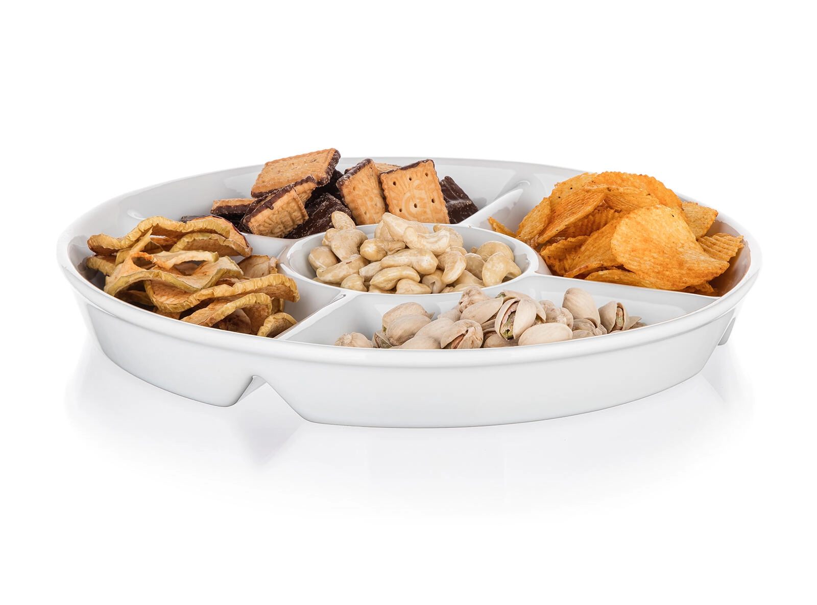 Flere rum gør det muligt at servere forskellige snacks uden at blande smagene – ideelt til dips, snacks og crudités.