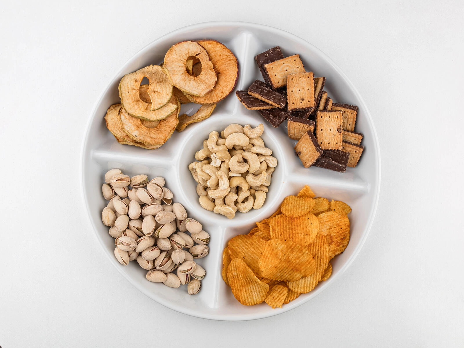 - Dip, nødder, chips, frugt, grøntsager, snacks