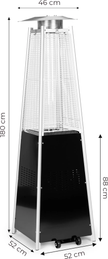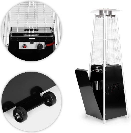 Den effektive brænder med glascylinder skaber en høj, synlig flamme og strålingsvarme i alle retninger. Ideel til terrasser, haver og udendørs serveringsområder.