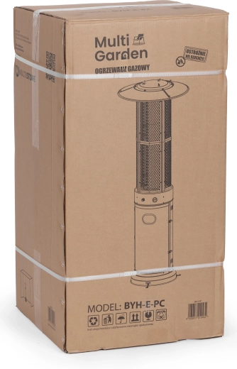 Varmeren leverer høj varmeeffekt op til 11 kW med trinløs regulering. Den brede reflektor og beskyttelsesnet sikrer effektiv spredning af varme i alle retninger for maksimal komfort på terrassen eller i haven.
