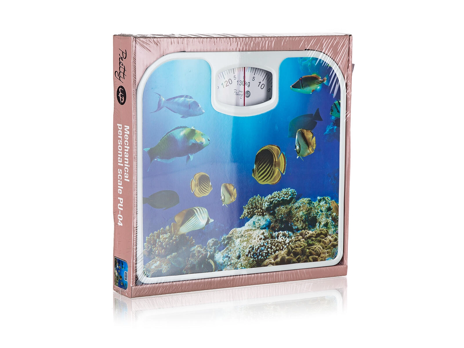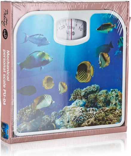 Denne personlige mekaniske vægt kombinerer pålidelig funktion med et attraktivt design. Dekoret med undervandstema giver dit badeværelse et friskt udtryk, mens den analoge skala op til 130 kg sikrer hurtig og overskuelig aflæsning.