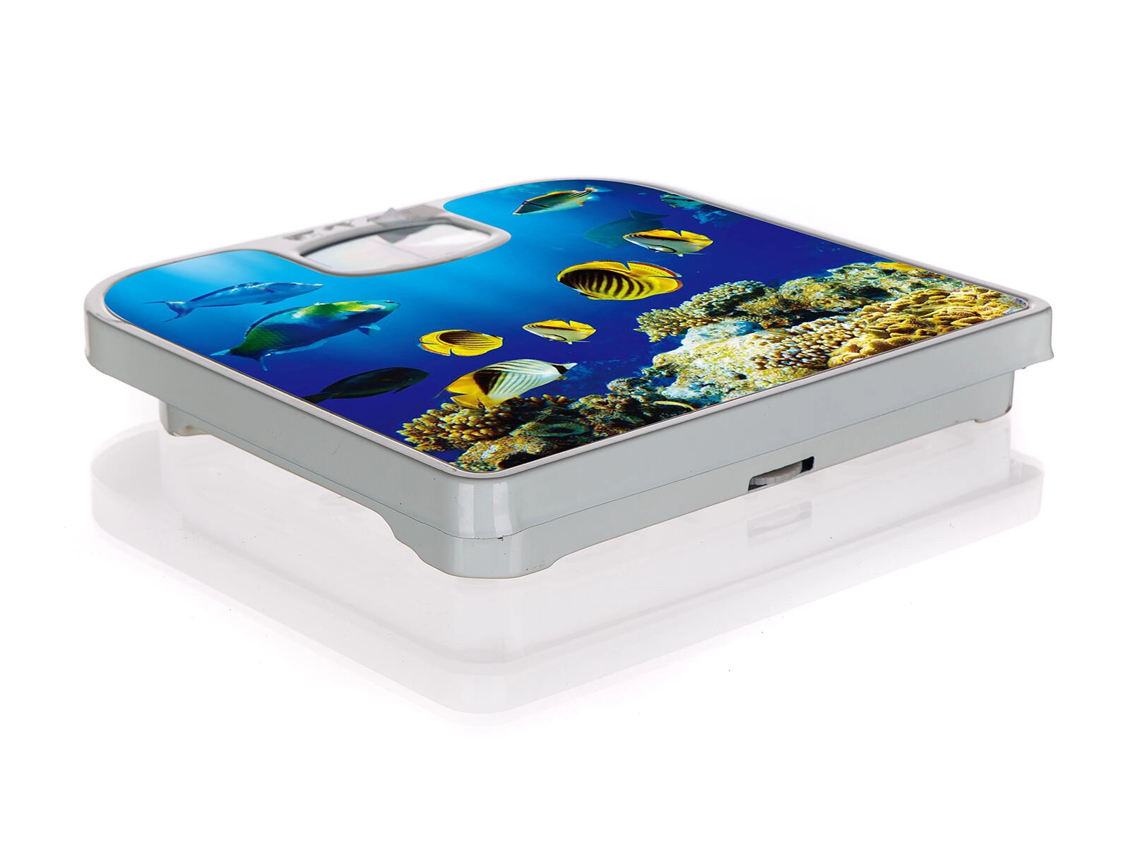 Det farverige oceanmotiv med tropiske fisk pifter dit badeværelse op og skaber en behagelig stemning under vejningen.