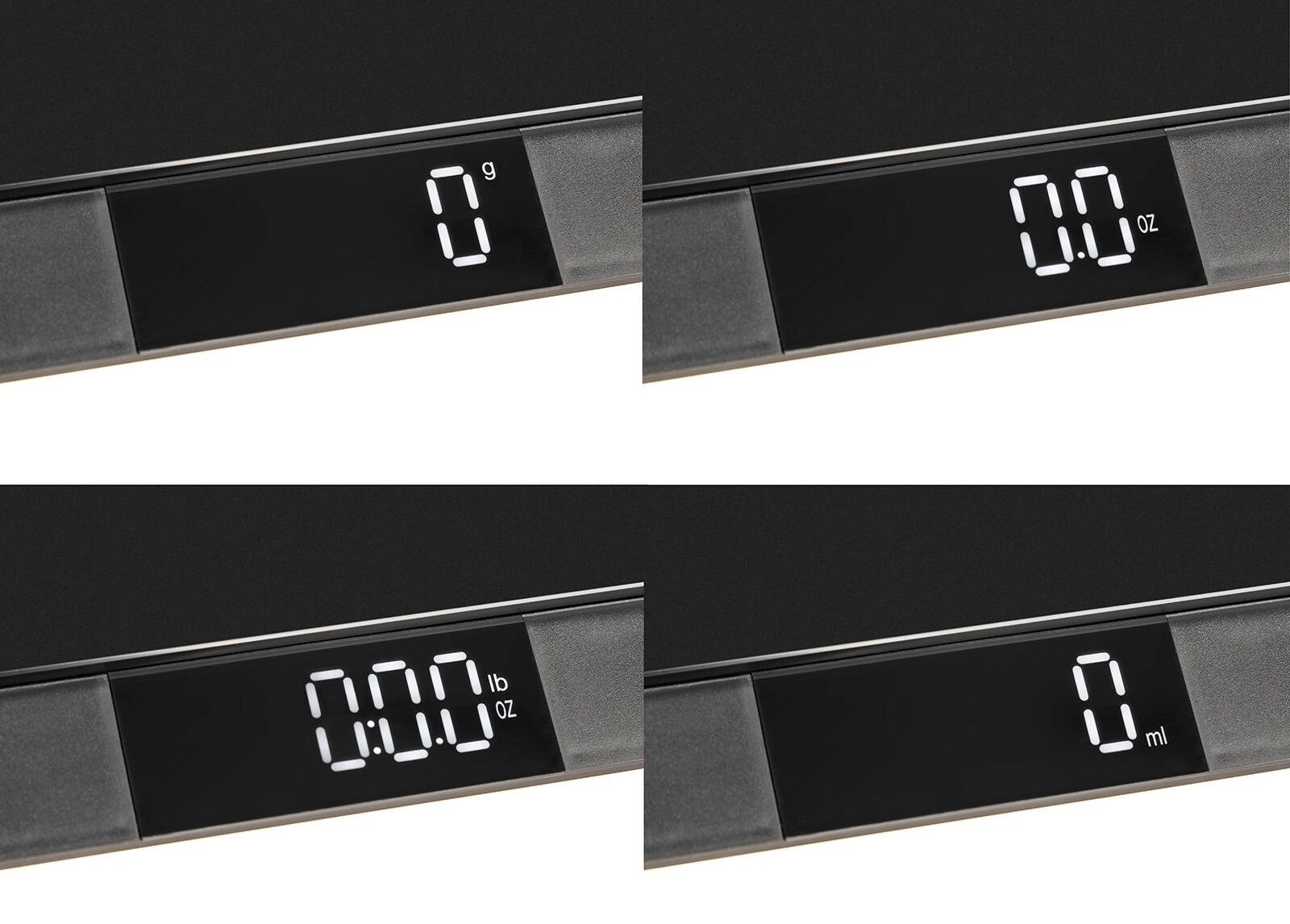 Med et enkelt tryk nulstilles beholderens vægt, og du kan nemt skifte mellem g, oz, lb:oz og ml til alsidig brug i køkkenet.