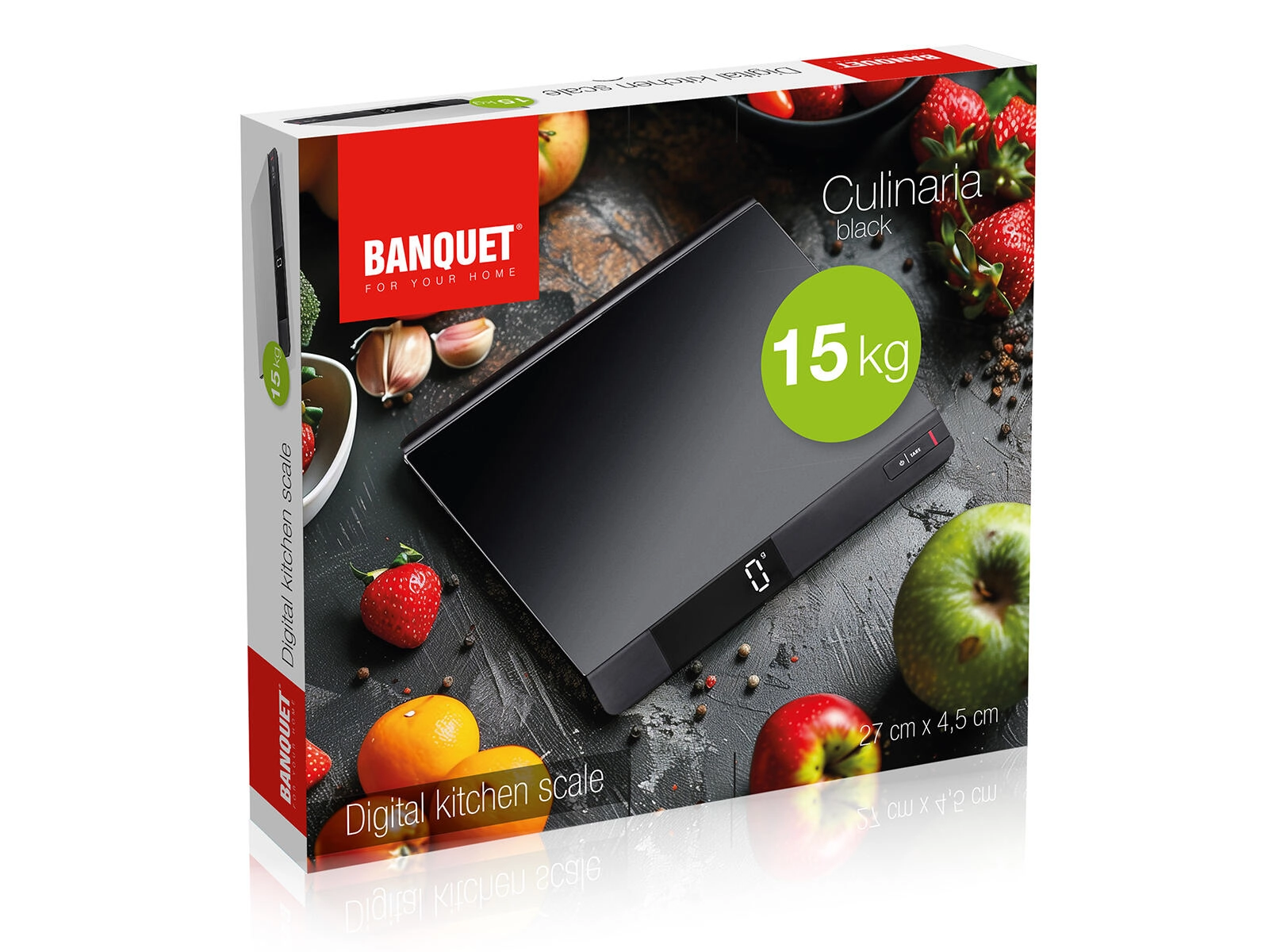 Stol på præcise resultater ved både bagning og madlavning. Den digitale køkkenvægt CULINARIA Black tilbyder høj bæreevne op til 15 kg og en praktisk tara-funktion til nulstilling af skåls eller beholders vægt. Takket være den store, flade overflade er det nemt at veje også mere voluminøse råvarer, mens det klare display sikrer fremragende læsbarhed.