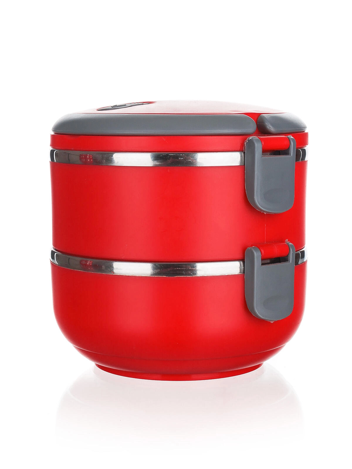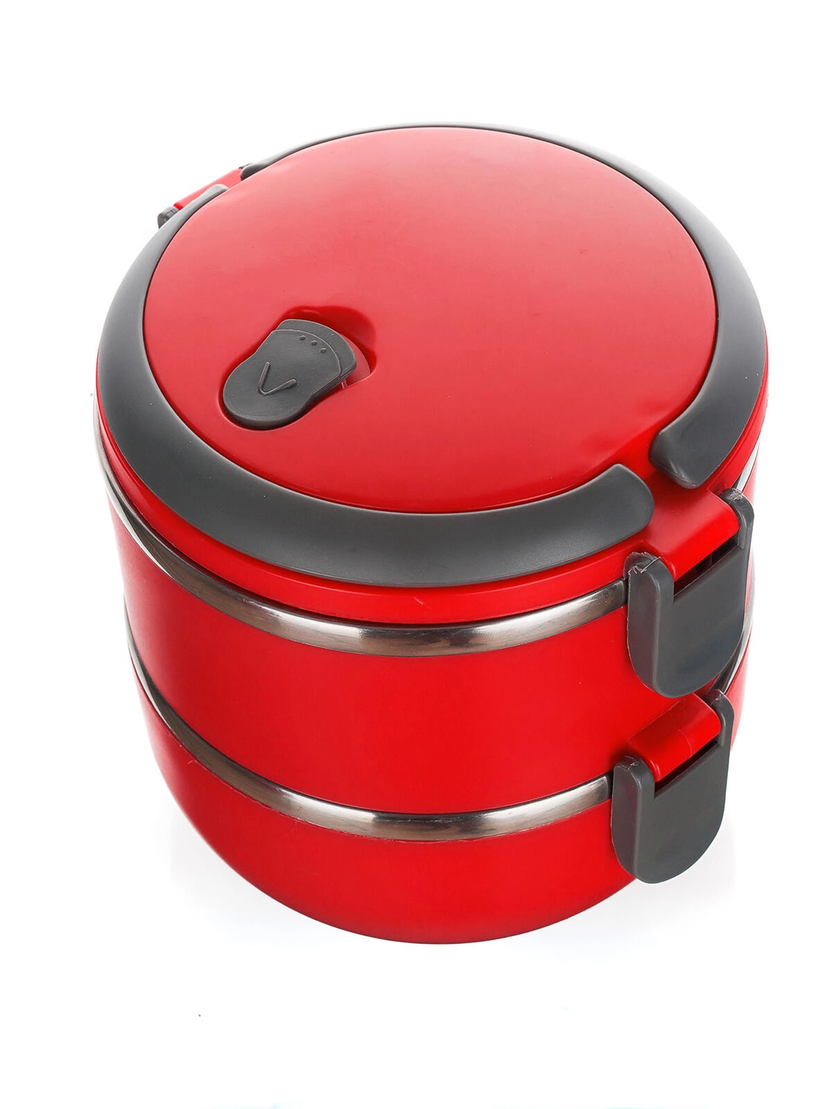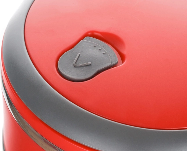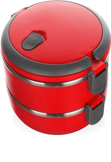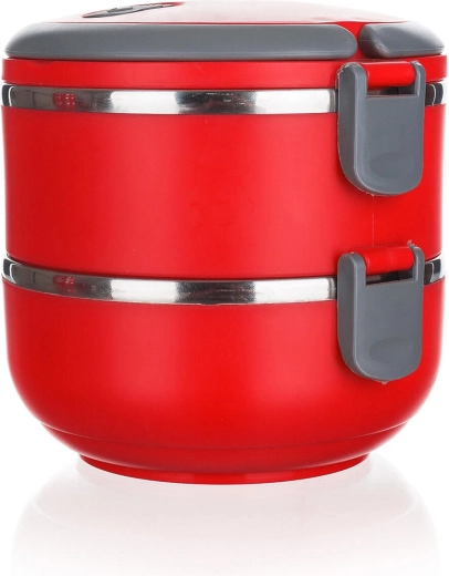 Den to-etagers madkasse CULINARIA Red i et moderne rødt design kombinerer slidstærk polypropylen med en inderskål i rustfrit stål 201 (tykkelse 0,30 mm). Hvert lag på 0,55 l holder portionerne adskilt, og det tætte låg med udluftningsventil minimerer lugt- og varmetab.