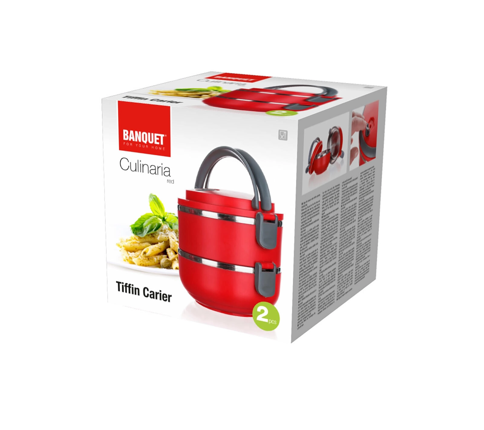 Den praktiske to-etagers madkasse CULINARIA Red er perfekt til rejser, arbejde og skole. Med to adskilte skåle med en samlet kapacitet på 1,1 l holder den maden pænt opdelt, sikkert lukket og bedre temperaturisoleret takket være de rustfri stålindlæg. Stærke sideklips og et nedfældeligt håndtag til nem transport sikrer komfort uden spild.