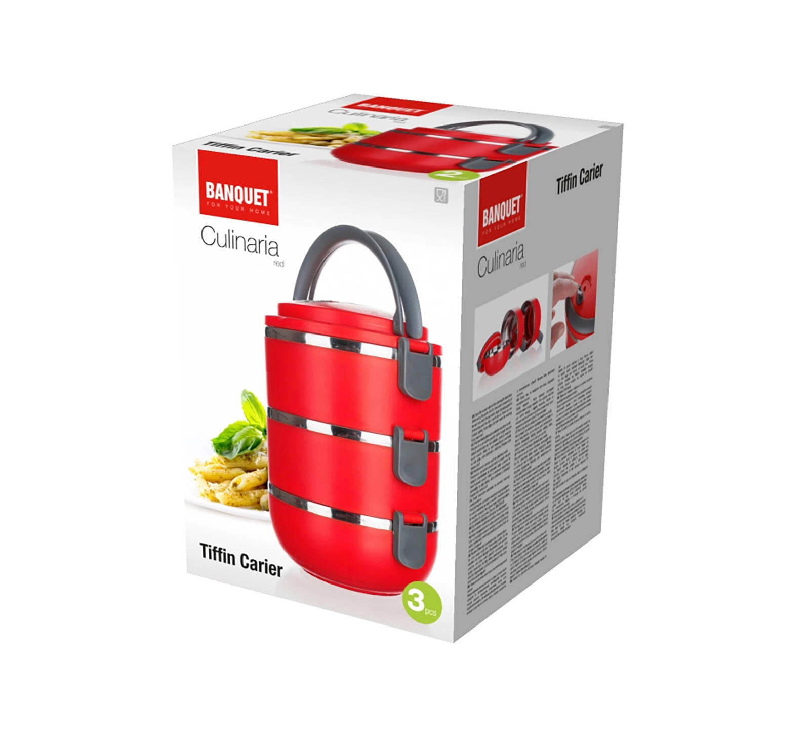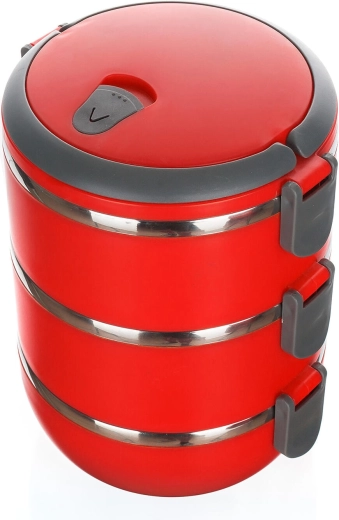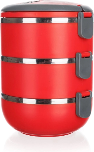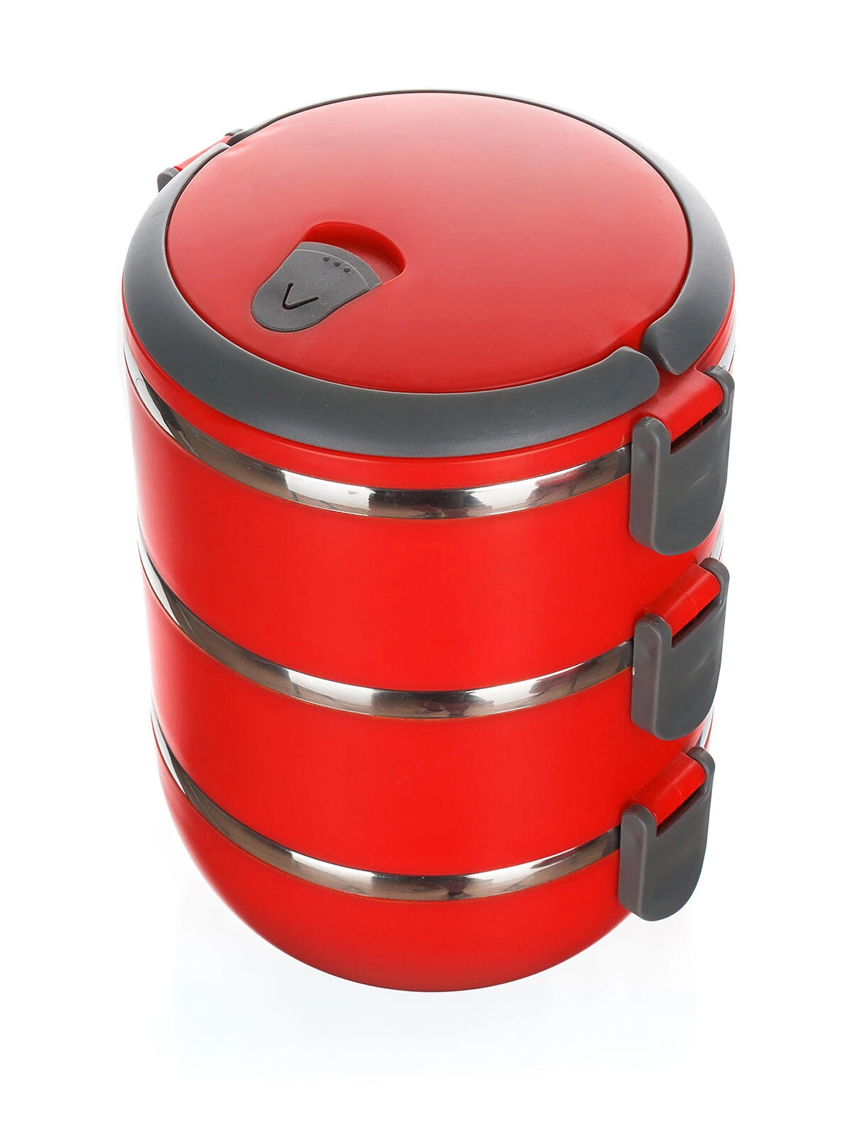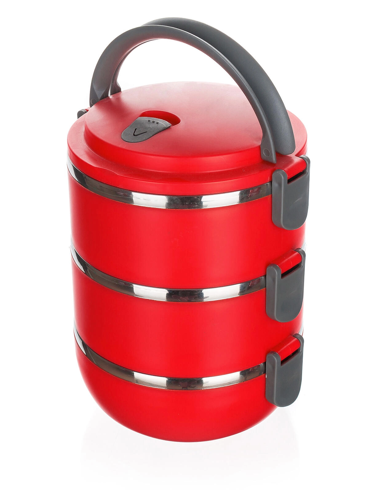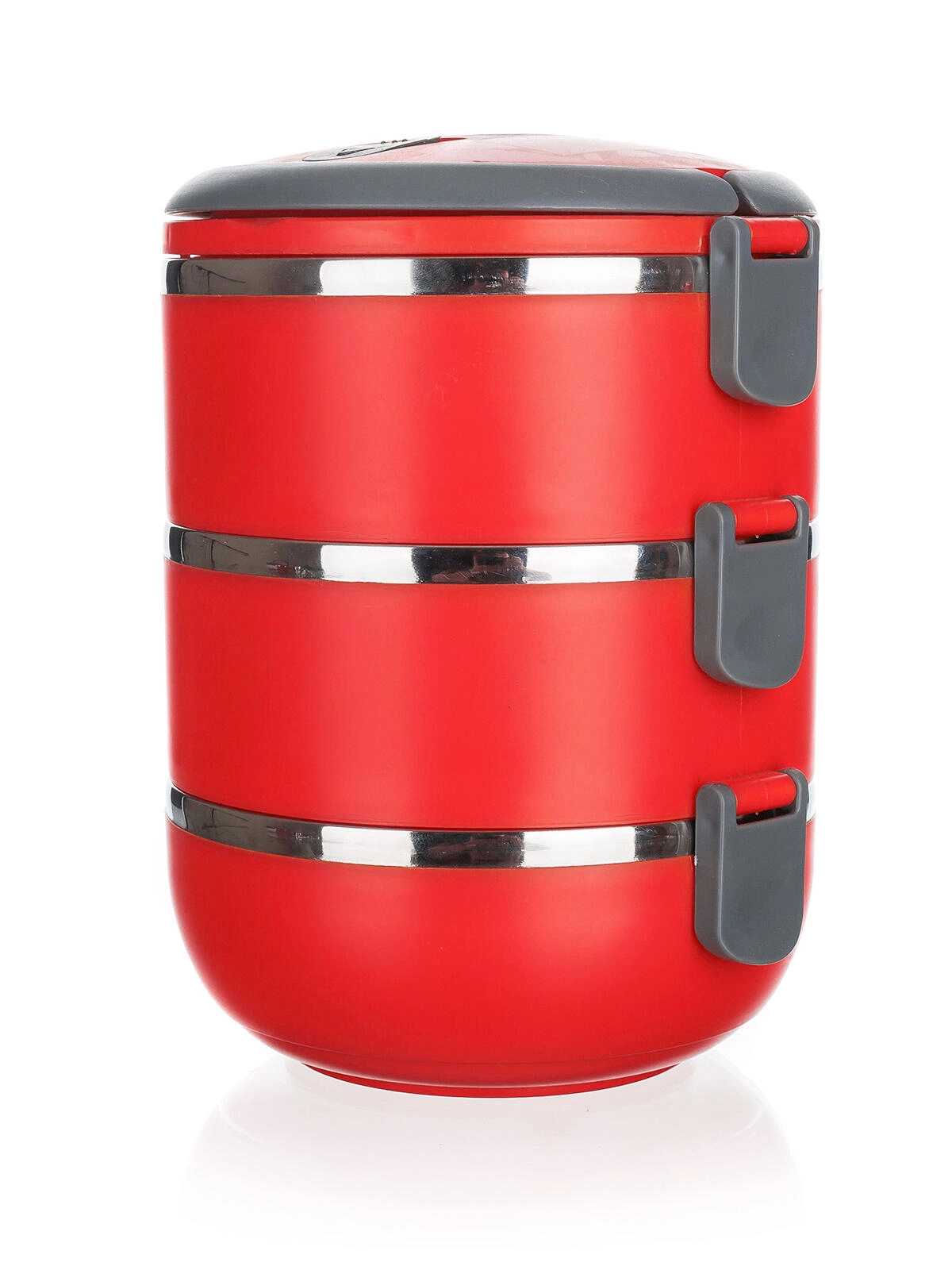 Nyd nem transport af frokost til arbejde, skole og på farten. Den treetagers CULINARIA Red tilbyder tre separate beholdere (3 × 0,55 l) til overskuelig adskillelse af suppe, hovedret og tilbehør. Den indvendige del er af kvalitets rustfrit stål 201 for bedre varmebevarelse og let rengøring, mens den ydre kappe af robust polypropylen beskytter mod forbrændinger og øger holdbarheden under transport.