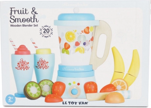 Mix en sund portion sjov til børnene med den træbaserede smoothieblender fra LE TOY VAN. Sættet indeholder en klassisk blender med aftagelig kande, 6 stykker skærefrugt med velcro, trækniv og 2 glas med sugerør. Fremstillet af FSC-certificeret træ, hånddekoreret med giftfri, vandbaserede farver og prisbelønnet for kvalitet og legeværdi.