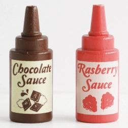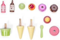 Aftagelige iskugler, vafler og bæger indbyder til at ”blande smage” og pynte med hindbær- eller chokoladesauce. Perfekt til at lege isbutik.