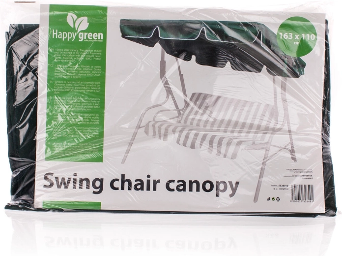 Praktisk reservebaldakin til gynge i størrelsen 163 × 110 cm af slidstærkt tekstil i elegant mørkegrøn. Fornyer nemt udseendet på din havgynge og giver behagelig skygge.