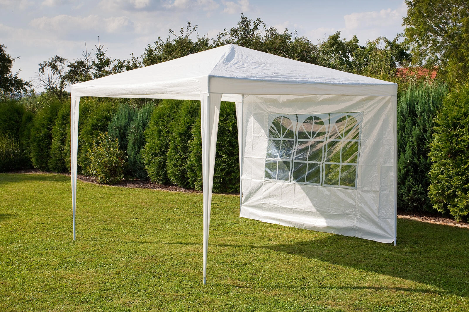 Takket være det robuste materiale PE (polyethylen) er sidevæggen let at vedligeholde og egner sig til gentagen brug ved havefester, familiesammenkomster og arrangementer på terrassen. Hurtig montering og afmontering sparer tid og giver fleksibel anvendelse efter behov.