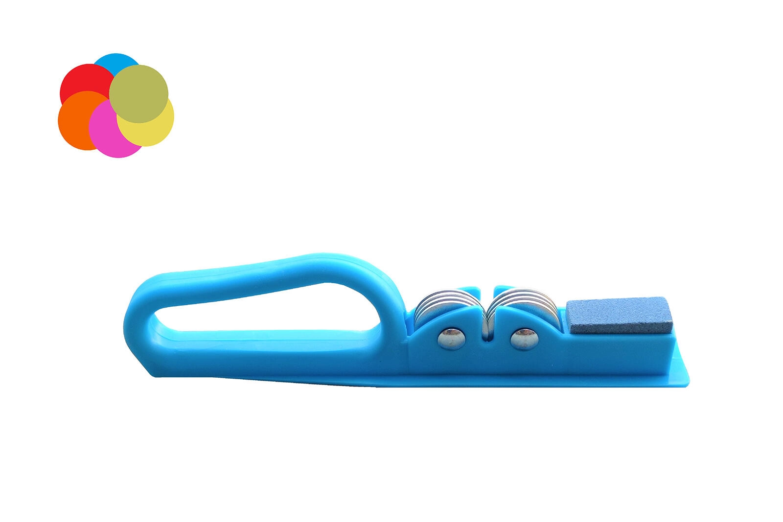 Knivsliber 2-i-1 med slibeskiver og håndtag, mix af farver