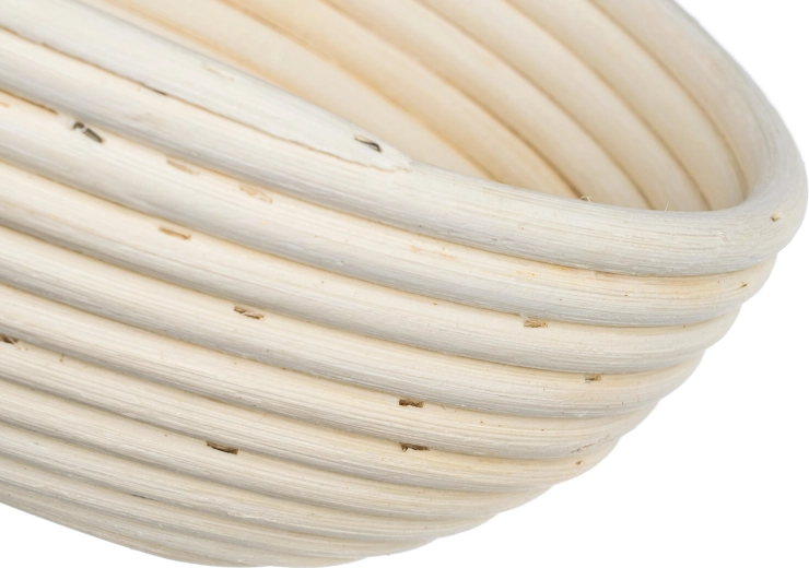 Den ovale hævekurv af naturlig rattan (peddigrør) er et uundværligt redskab for både hjemmebagere og professionelle bagere. Takket være sin formstabilitet og fine rilling understøtter den korrekt hævning af dejen, hjælper med at bevare brødets form og skaber et attraktivt spiralformet mønster på skorpen typisk for håndværksbrød.