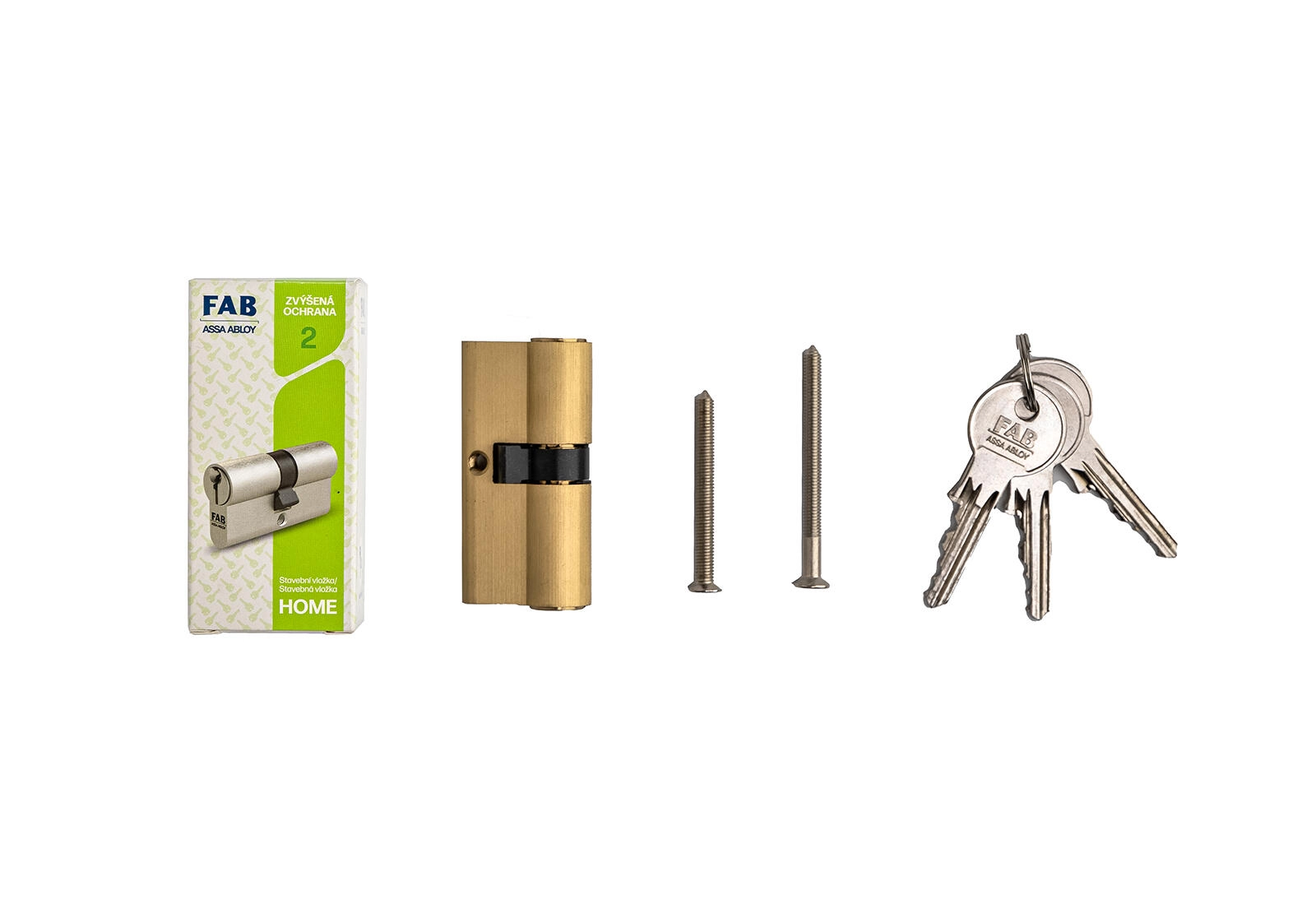 Den bygningscylindriske indsats FAB 2 HOME 30/35 er et praktisk valg til steder, hvor der kræves et grundlæggende sikkerhedsniveau. Den tilbyder robust udførelse i messing, jævn drift og nem betjening takket være tre forlængede stålnøgler.