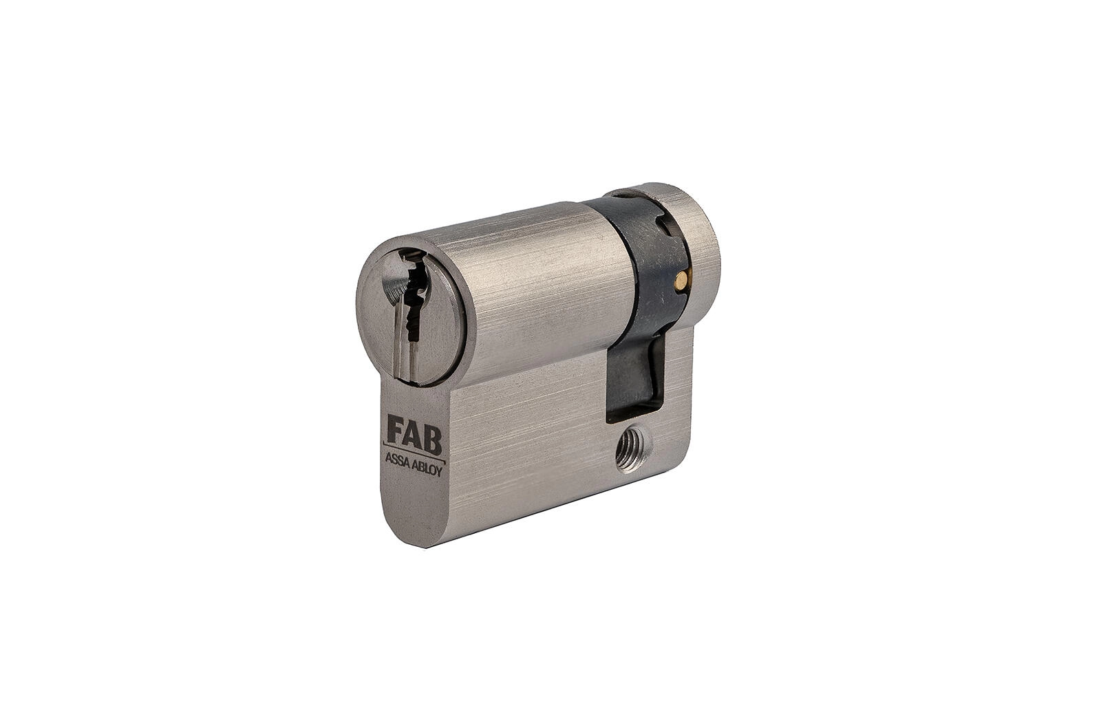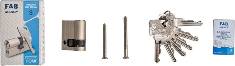 Sikkerhedsindsatsen FAB 3 HOME er designet til langvarig, høj sikring af indgangsdøre til lejligheder, parcelhuse og kontorer. Nikkelfinish, messinghus og tromle samt præcis fremstilling sikrer jævn drift og lang levetid. Takket være den patentbeskyttede paracentrisk profil og beskyttelsen mod boring giver den en pålidelig barriere mod almindelige indbrudsmetoder.