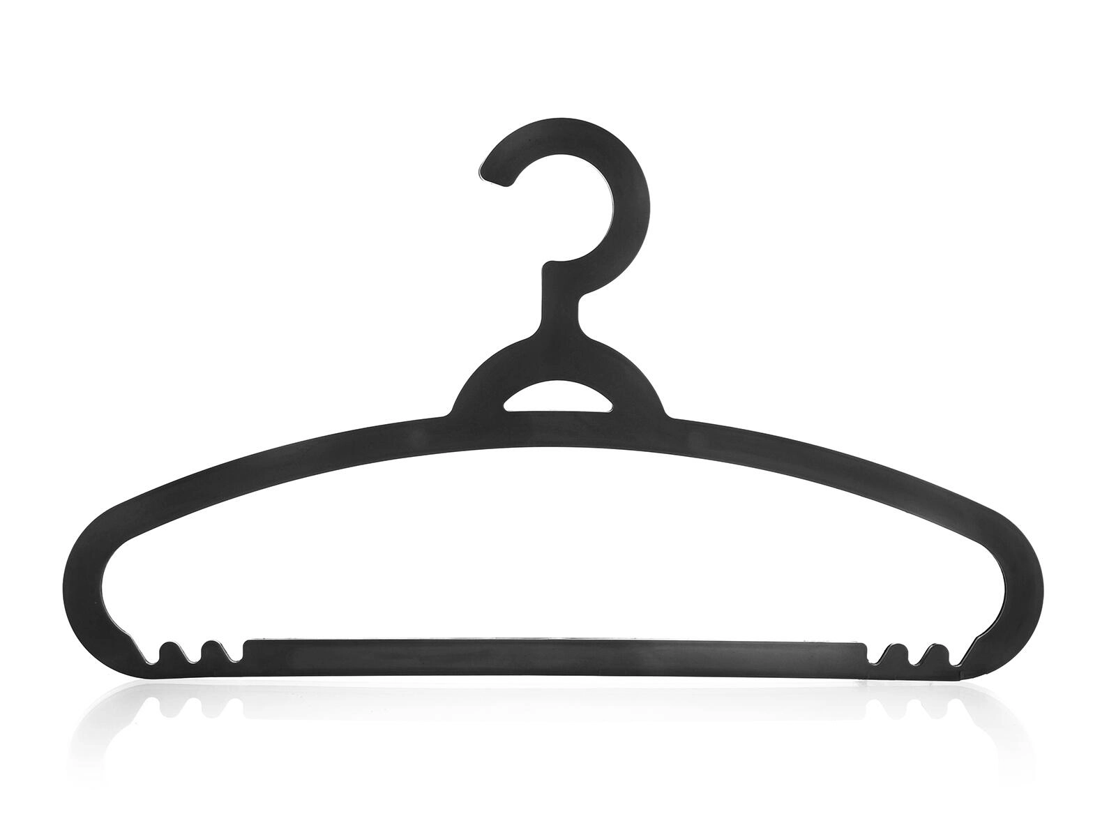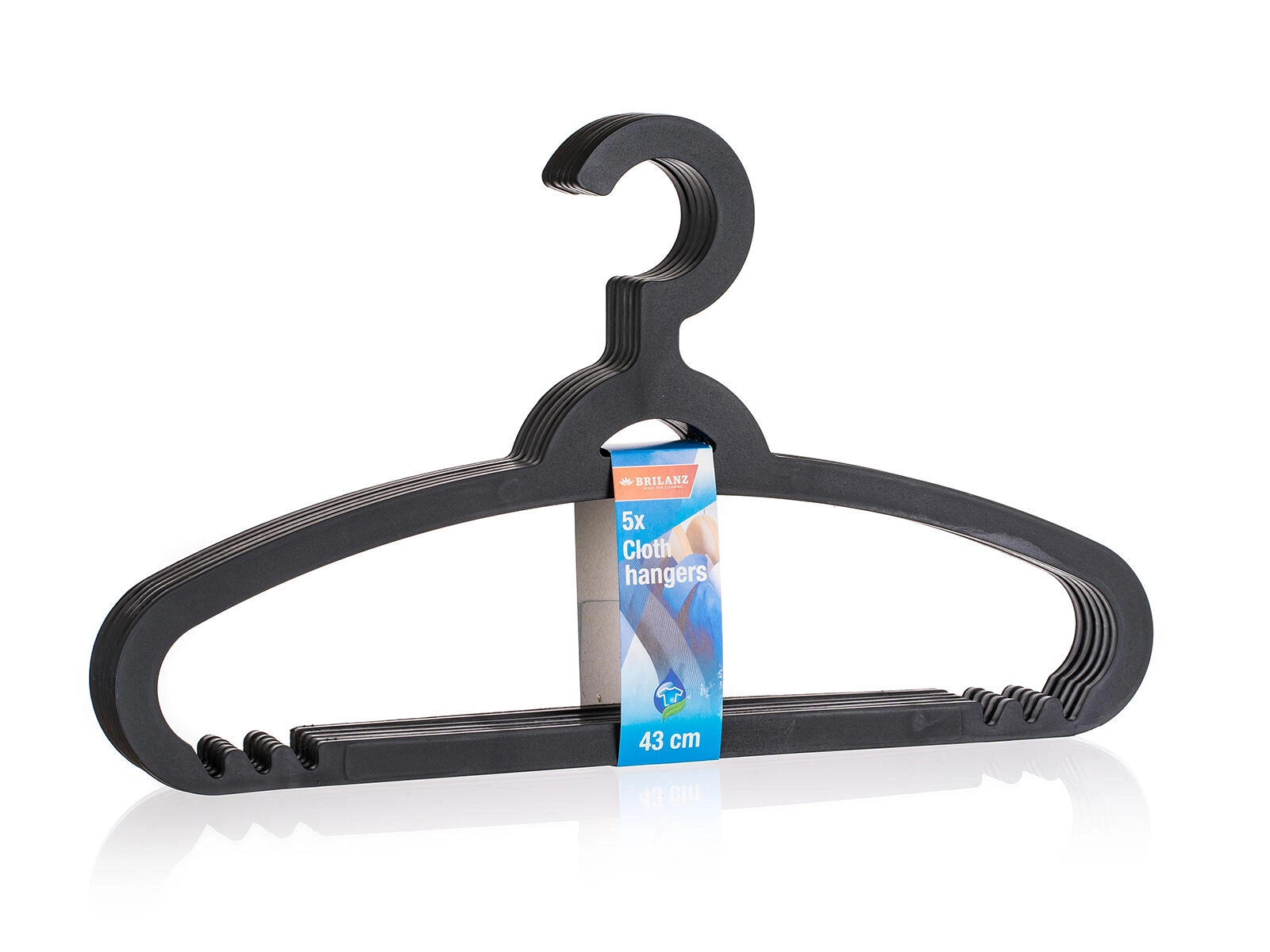 Dette praktiske sæt med 5 sorte bøjler er ideelt til daglig brug i enhver garderobe. Fra T‑shirts og skjorter til kjoler og bukser – den universelle form med skridsikre indhak hjælper med at holde tøjet på plads og beskytter mod at glide af.