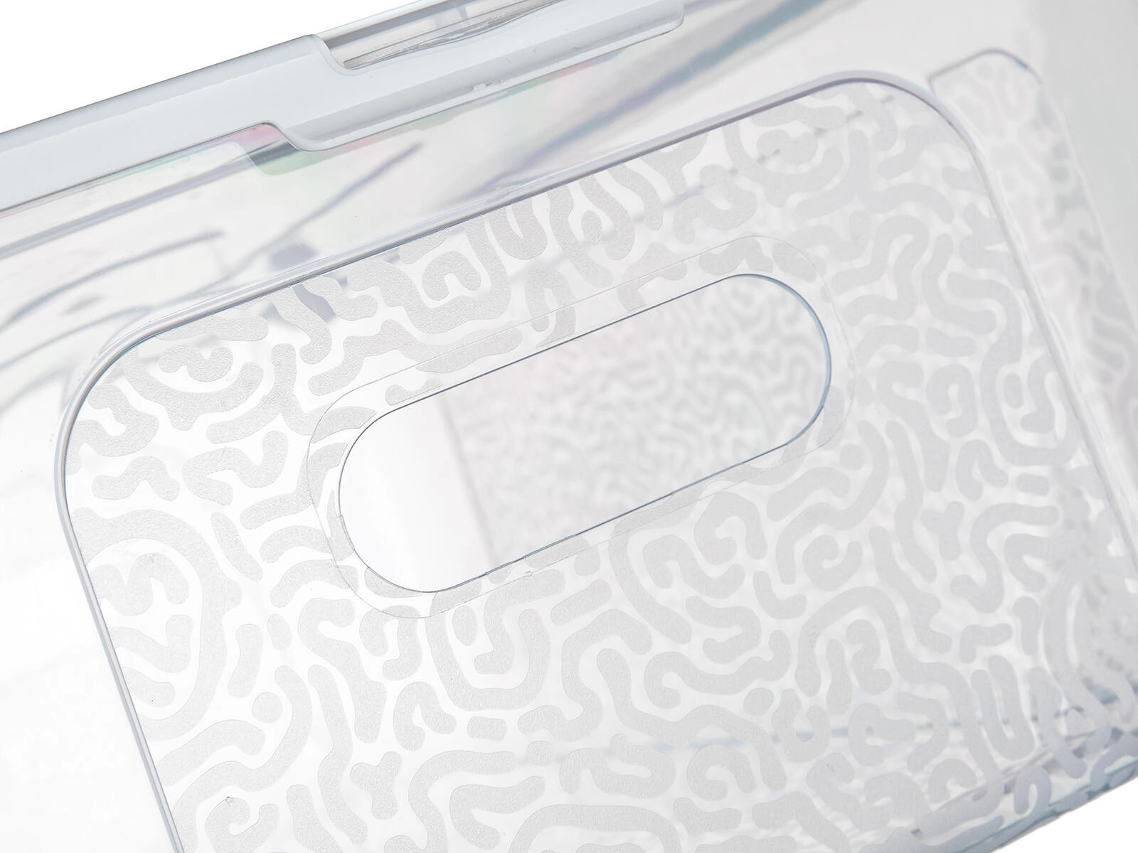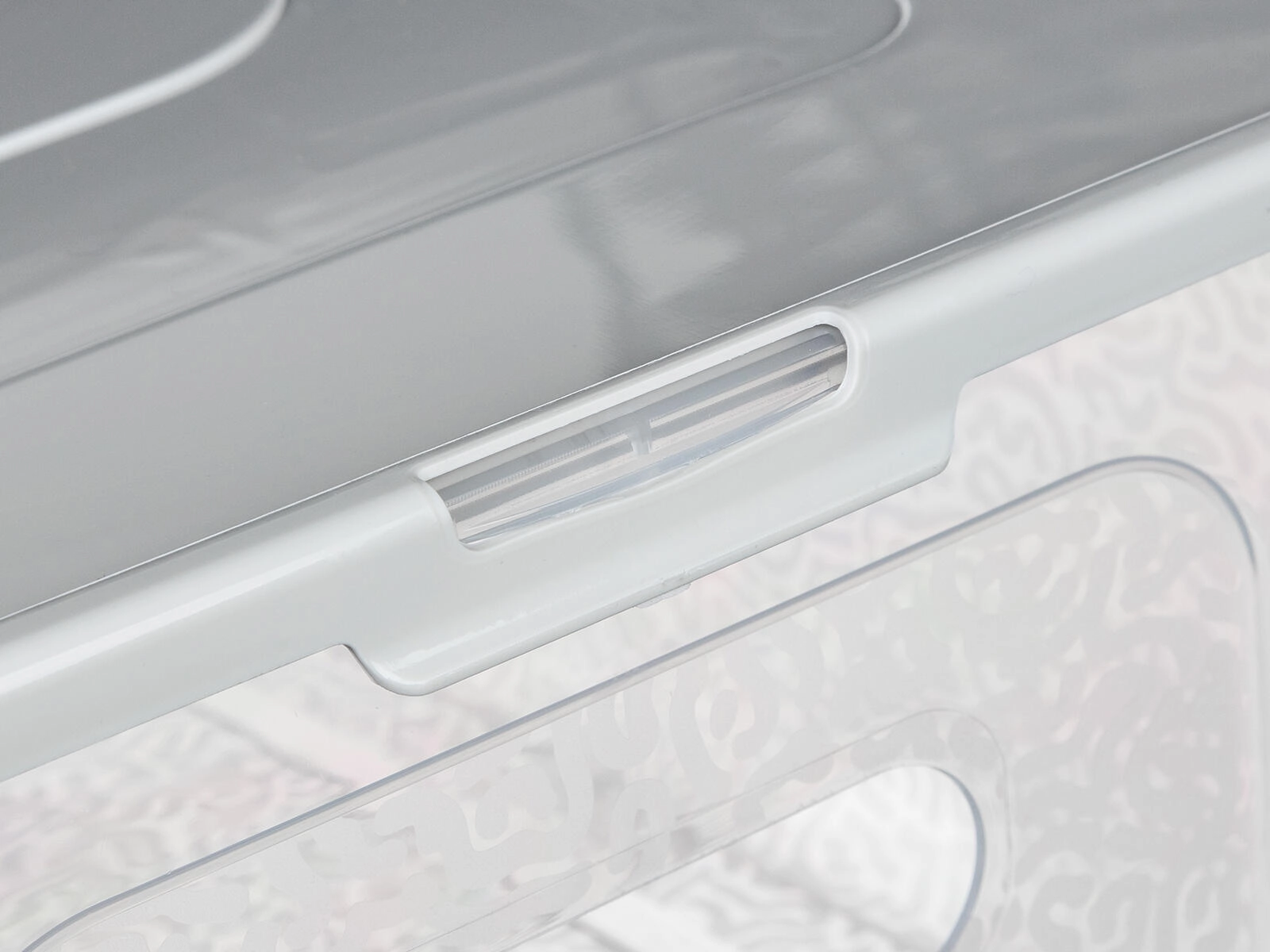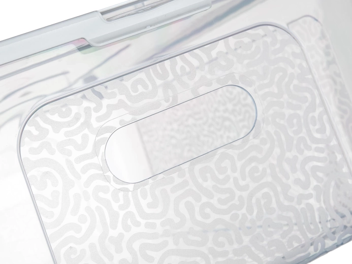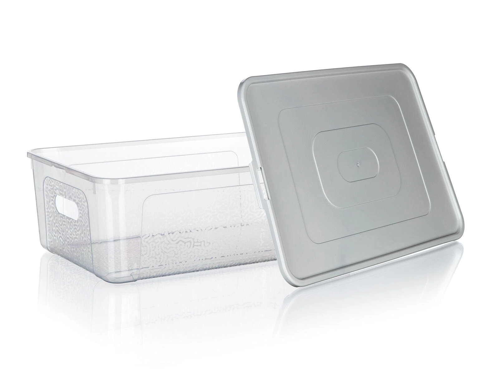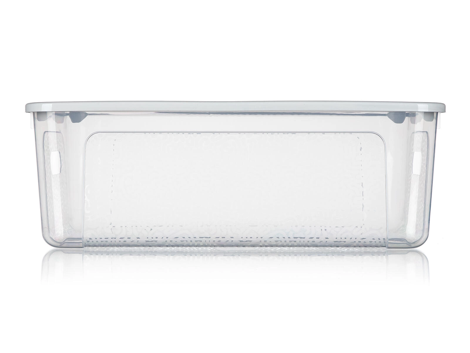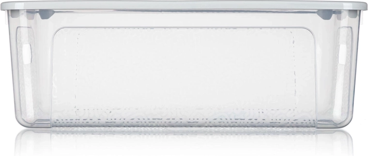 Gennemsigtig boks, gråt/ hvidt låg (afhængigt af variant)