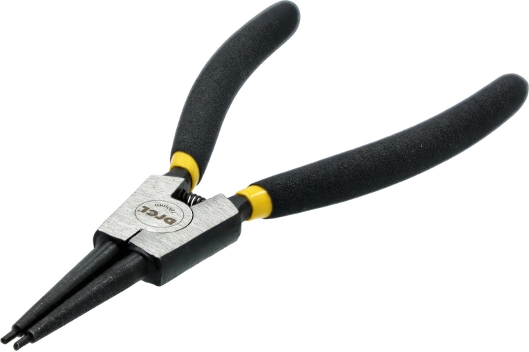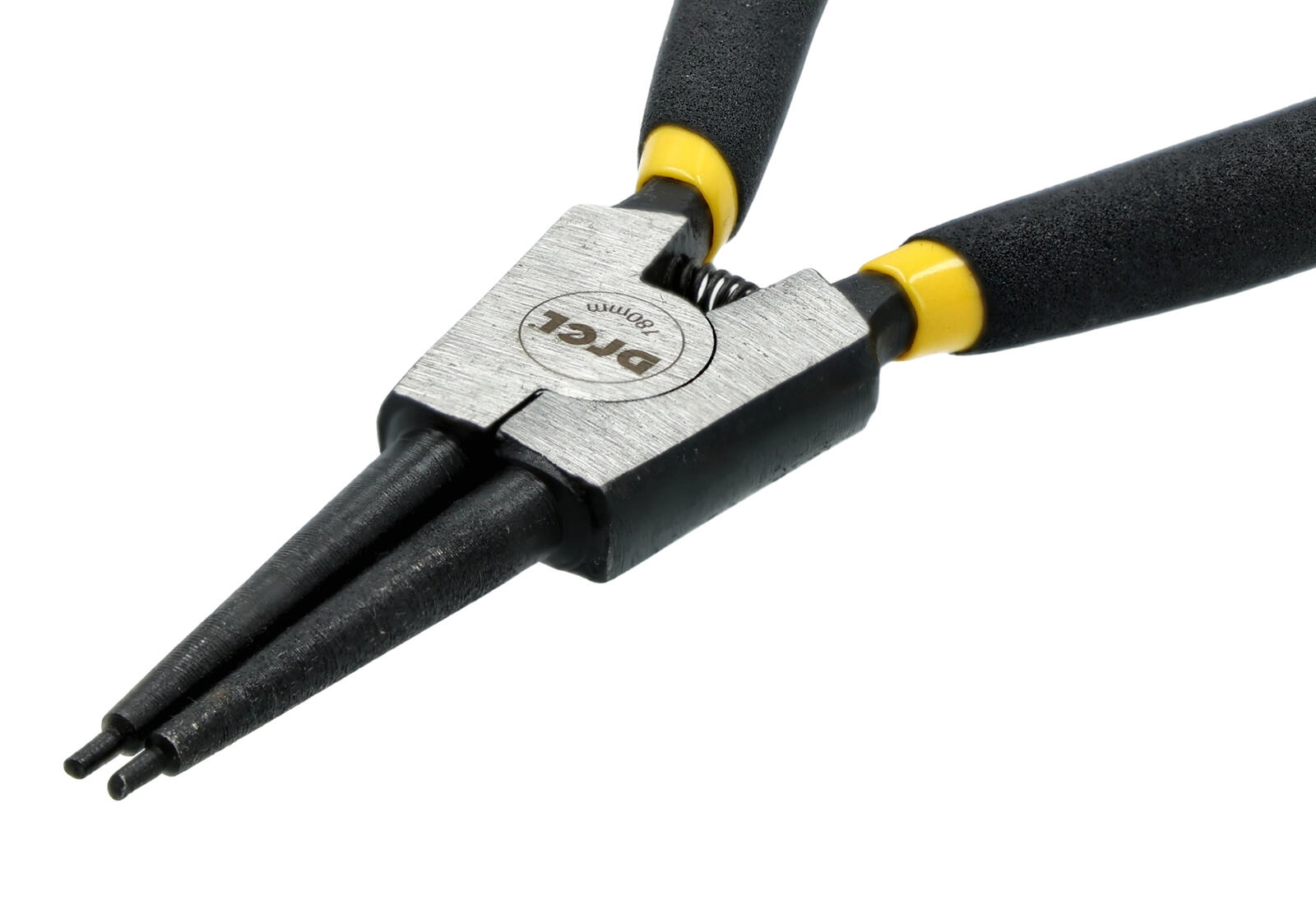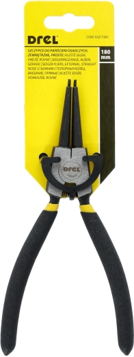DREL udvendige seegerringtænger 180 mm er et pålideligt værktøj til montering og demontering af låse- (seeger-) ringe på aksler. Takket være de præcise spidser kan du nemt øge ringens diameter ved at klemme håndtagene, hvilket muliggør hurtig montering eller afmontering uden at beskadige komponenter.