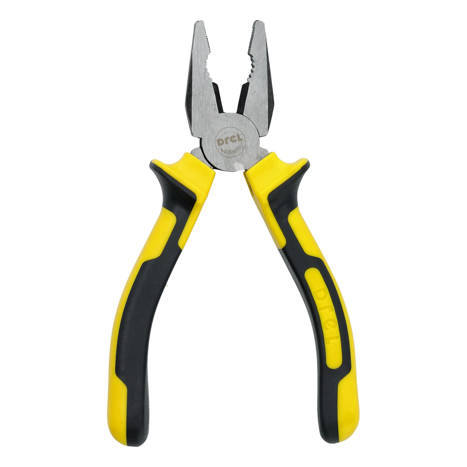 DREL-tangen på 160 mm er et pålideligt værktøj til dagligt arbejde i værkstedet, hjemmet og ved montage. Takket være de riflede kæber sikres et fast greb om forskellige materialer, og skær ved leddet muliggør ren klipning af tråd. Den forkromede overflade øger modstanden mod slid og korrosion.