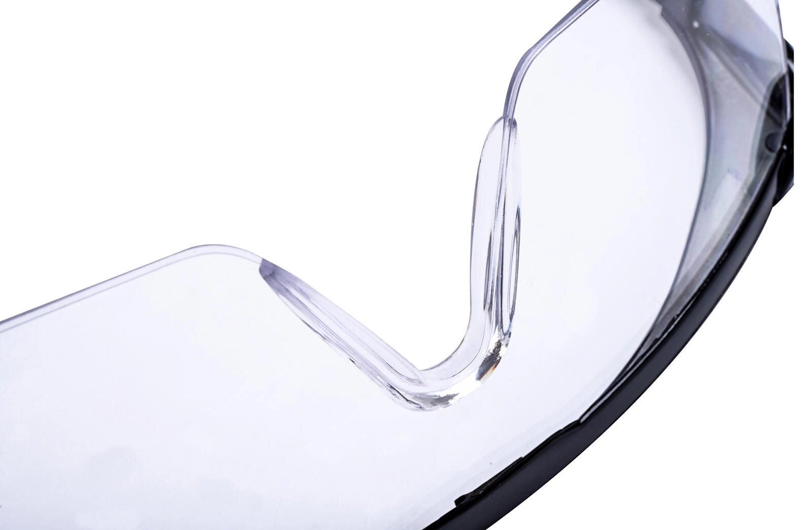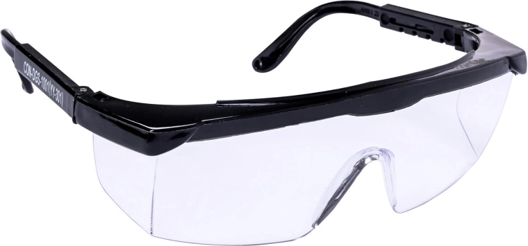 De omsluttende klare linser udvider synsfeltet og beskytter øjnene også fra siderne mod splinter, støv og sprøjtende væsker.