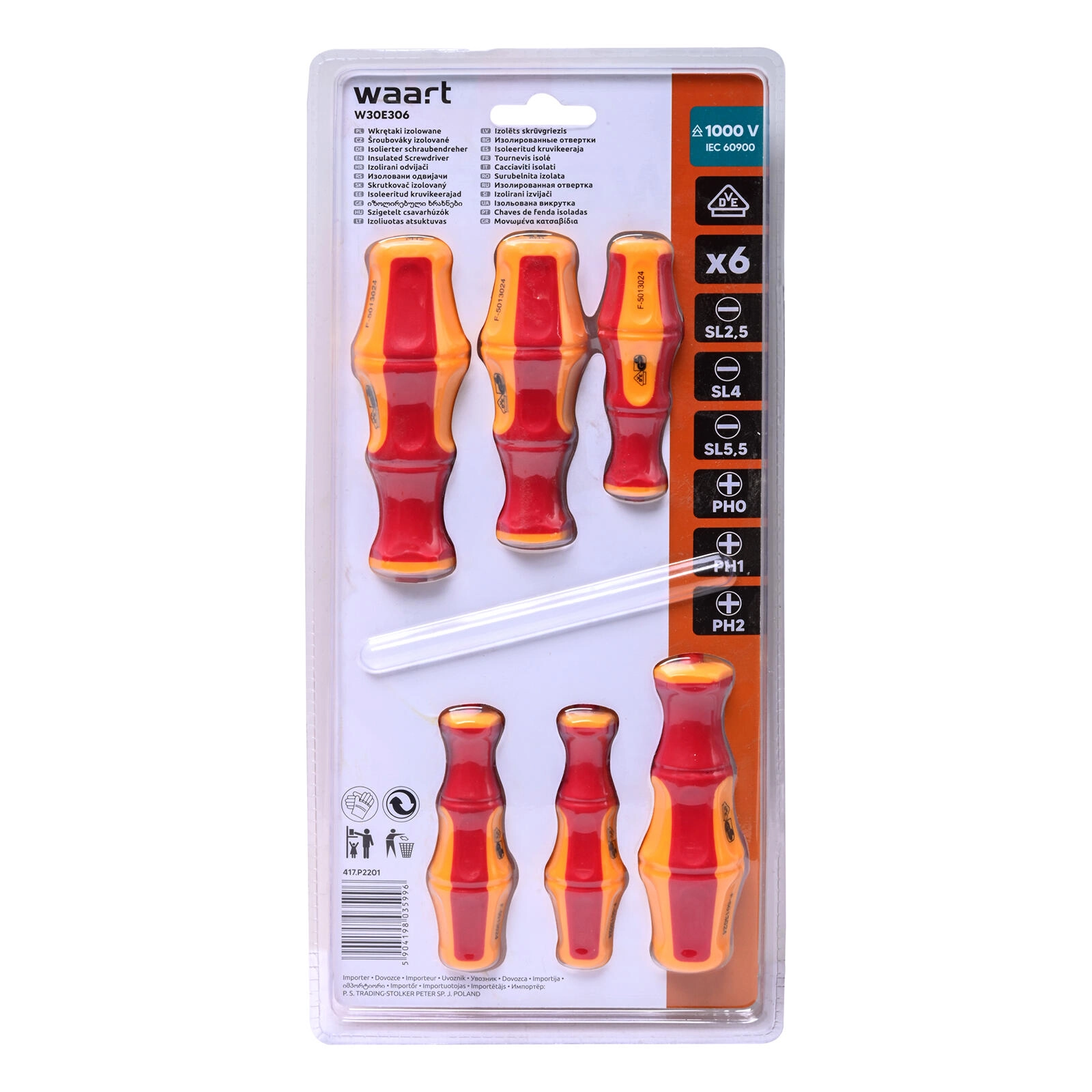 Dette alsidige sæt indeholder de mest anvendte flade og krydskærv‑størrelser til montage, service og reparationer i hjemmet. Takket være isolering testet i henhold til IEC 60900 giver det pålidelig beskyttelse ved arbejde på udstyr under spænding op til 1000 V. Den lette men robuste udførelse med ergonomiske, skridsikre håndtag sikrer et sikkert greb og minimerer håndtræthed.