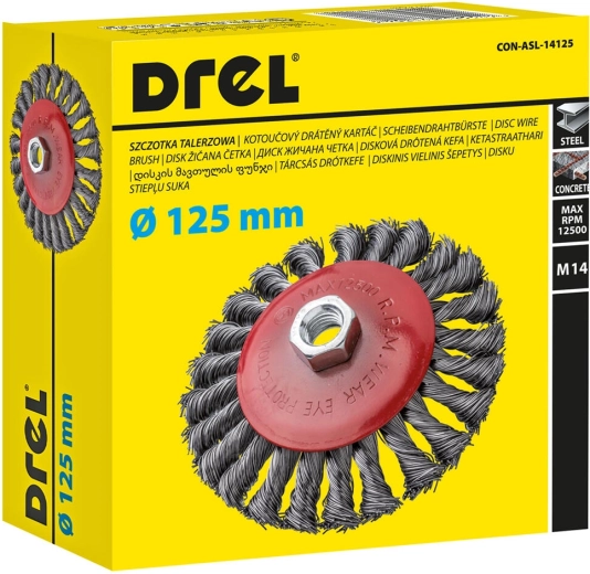 Den skålformede stålbørste med en diameter på 125 mm er ideel til krævende rengøring af metaloverflader. De robuste tvundne tråde sikrer høj materialeafvirkning og holdbarhed ved daglig brug. Det standardiserede M14-gevind garanterer kompatibilitet med de fleste vinkelslibere.