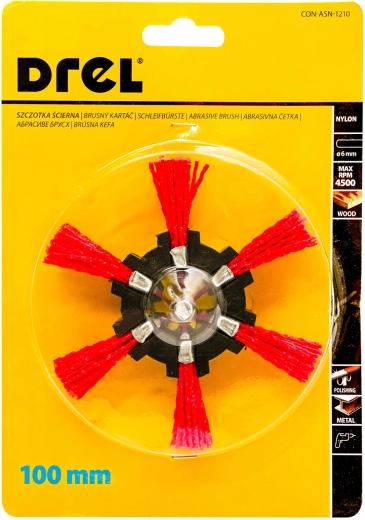 Den runde poleringsbørste til 6 mm skaft med en diameter på 100 mm er et praktisk værktøj til både hjemmeværkstedet og professionelle. De tætte og holdbare nylonbundter giver konsekvent kontakt med overfladen og hjælper med hurtigt at fjerne snavs, rester af maling eller mattere og ensarte materialets struktur.