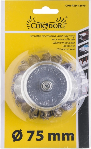 Universel kopbørste med skaft til boremaskiner og lige slibere med diameter 75 mm og bølget ståltråd 0,5 mm. Ideel til fjernelse af rust, afrensning af gamle malinglag, ruhedsskabelse af overflader og forberedelse til lakering. Det tætte bundt af kvalitetsståltråd sikrer hurtig og effektiv rengøring selv på svært tilgængelige steder.