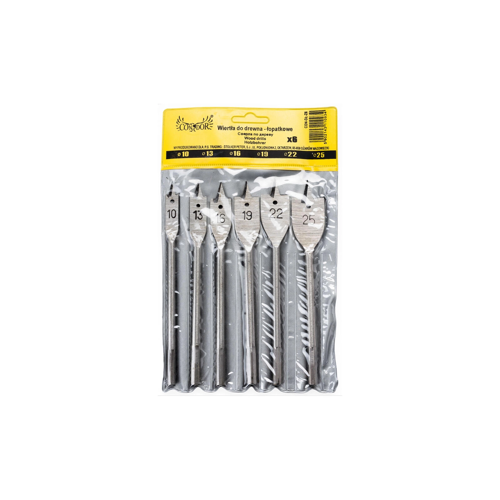 Med dette kompakte sæt med 6 fladbor får du alt, hvad du behøver til hurtigt at lave huller med større diametre i træ. Den skarpe centreringsspids gør det nemt at starte hullet præcist uden utilsigtet at glide på materialets overflade, hvilket især er nyttigt på hårdere plader og krydsfiner.