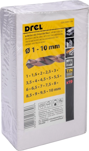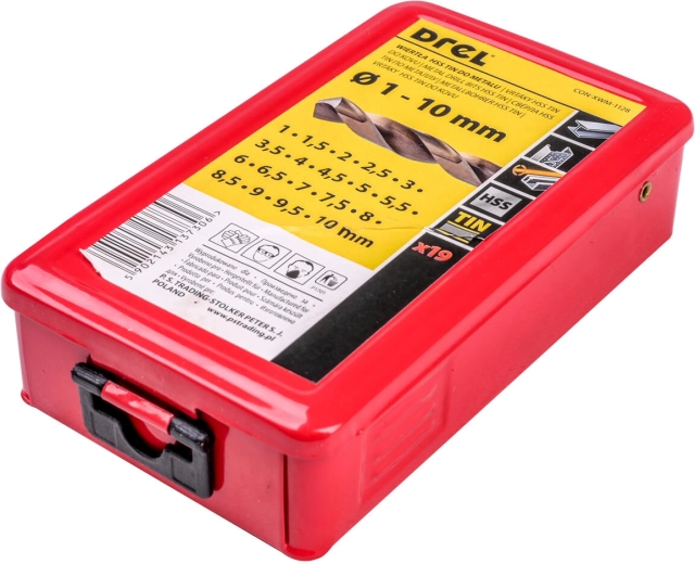 Dette alsidige sæt med 19 dele dækker de mest anvendte diametre fra 1 til 10 mm og er ideelt til værksteder, vedligehold og gør-det-selv. Borene af hurtigtstål HSS i henhold til DIN 338 er fuldslebne og forsynet med titannitrid (TiN)-belægning for højere slidstyrke og mere jævn spånafgang.