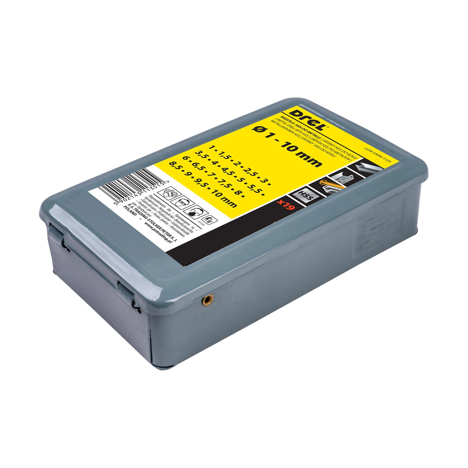Ideelt til dyb boring og højtydende brug i værkstedet og på byggepladsen. Præcise størrelsestrin fra 1 til 10 mm dækker de mest almindelige behov, mens den metalkassette holder alt pænt organiseret og beskyttet.
