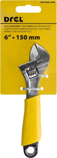 Den praktiske og pålidelige justerbare nøgle 150 mm (6") er designet til alsidig brug. Indstillingsskruen muliggør præcis regulering af kæbebredden efter det ønskede mål, så ét værktøj dækker flere størrelser af befæstelser.