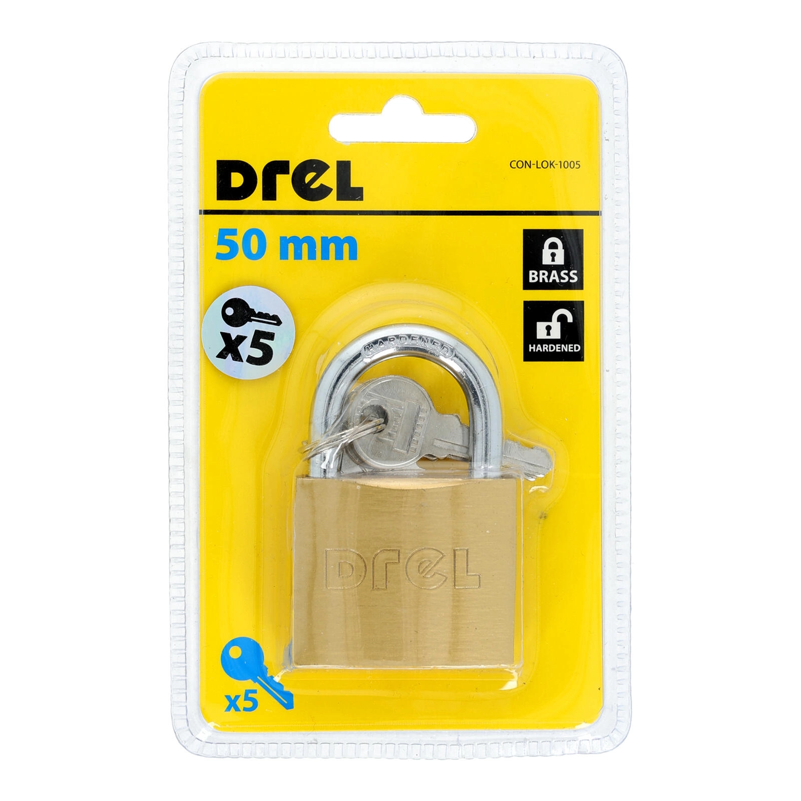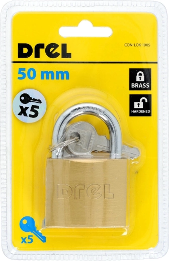 Klassisk hængelås med en bredde på 50 mm i holdbar messing, ideel til sikring af porte, boder, skabe eller lagre. Den tilbyder pålidelig beskyttelse takket være det solide hus og leveres med 5 nøgler for nem deling af adgang. Messingkonstruktionen sikrer lang levetid og alsidig anvendelse i både hjemmet og værkstedet.