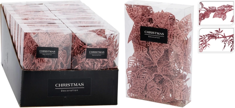 Elegant guirlande med blade i længden 180 cm i en blid lyserød farve, som skaber en festlig atmosfære i interiøret og til fejringer. Takket være den glitrende overflade reflekterer den smukt lyset og er ideel til dekoration af borde, døre, vinduer eller fotohjørner. Vi tilbyder et mix af 2 typer til originale kombinationer.