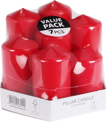 Dette stilfulde 7-delte sæt af røde stearinlys tilbyder en harmonisk blanding af størrelser til dekoration af bord, kommode og festlige arrangementer. Hvert lys har en ensartet diameter på 55 mm og varierer i højden, så du nemt kan skabe en effektfuld komposition i flere niveauer. Den dybe røde farve understreger både romantisk og festlig stemning.