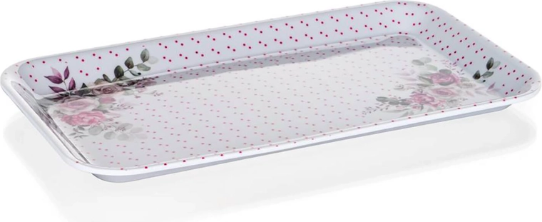 Denne melaminbakke i størrelsen 29,5 × 16,5 cm i ROSE-design er perfekt til servering af morgenmad, desserter, kaffe eller små anretninger. Den lette konstruktion og behagelige form sikrer komfortabel transport, selv når bakken er fuldt lastet.