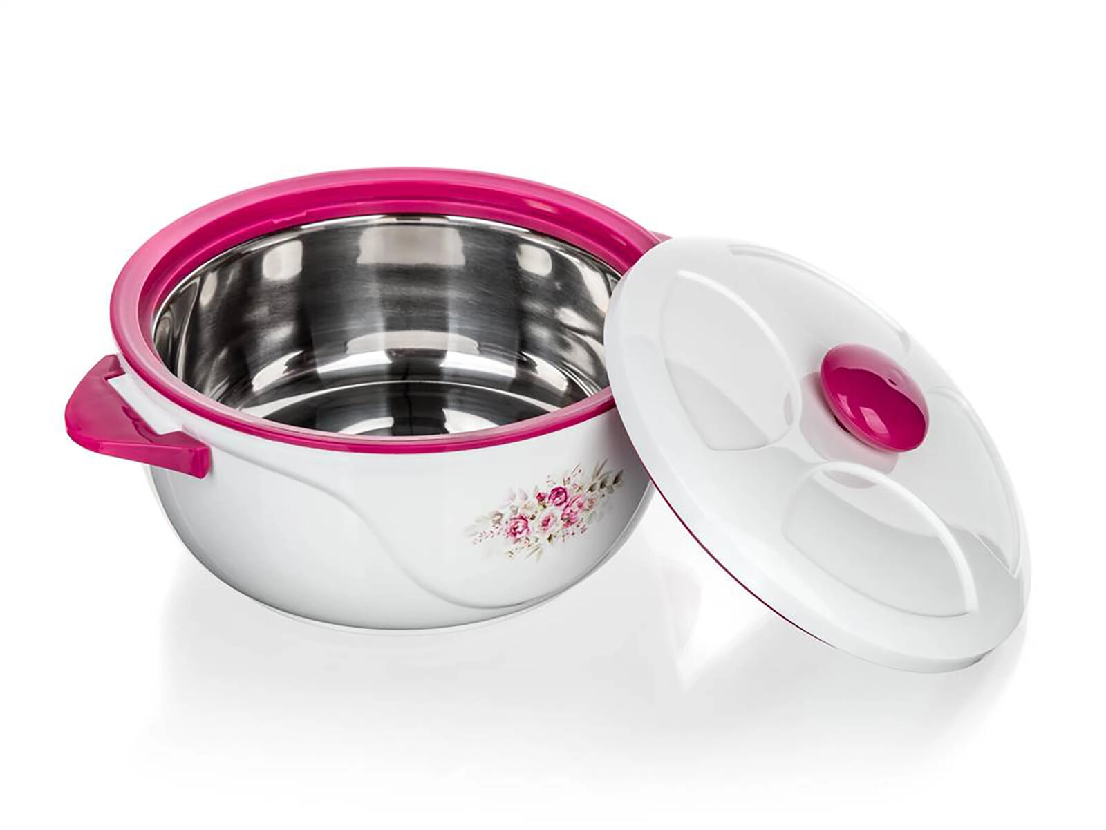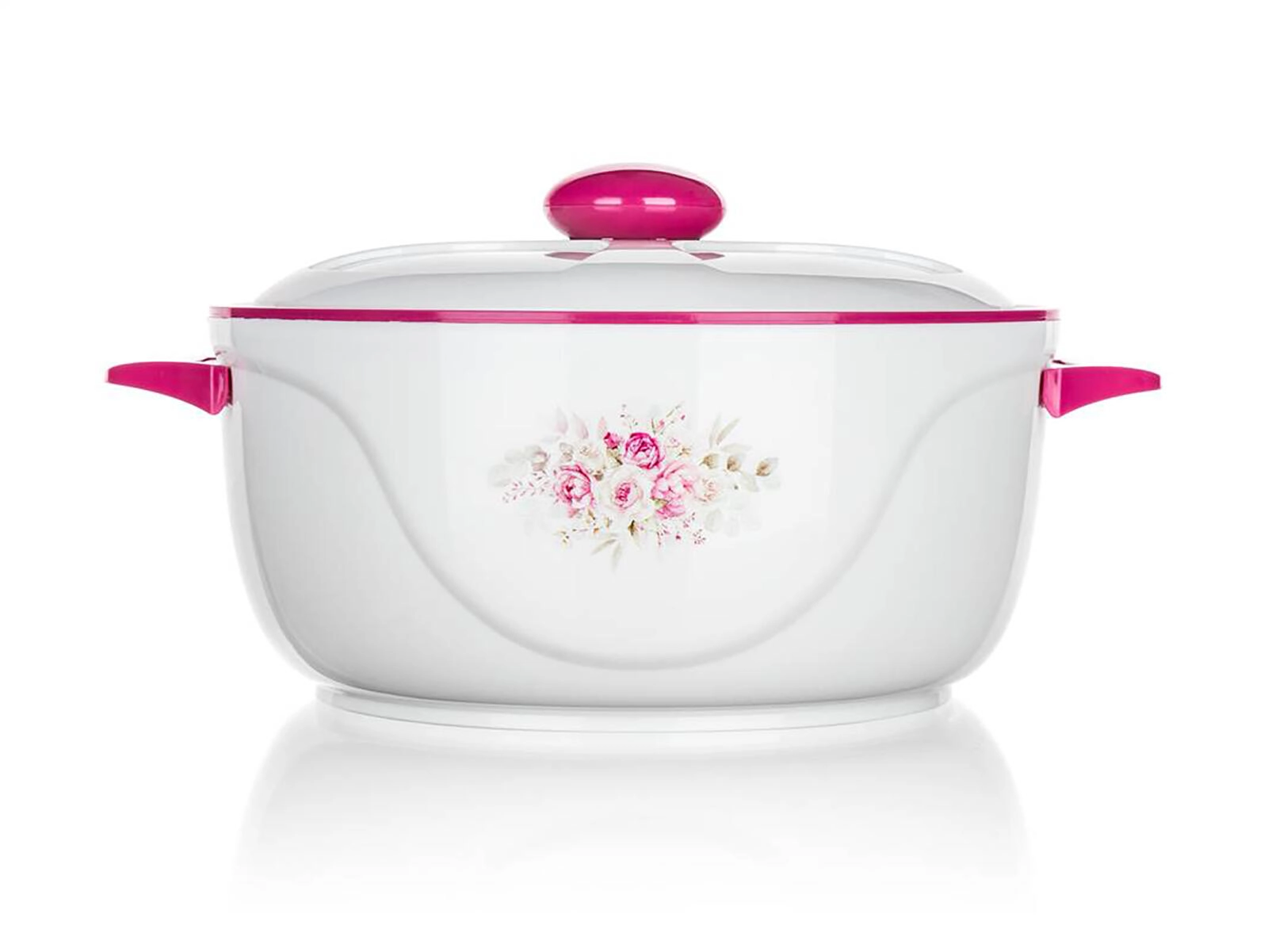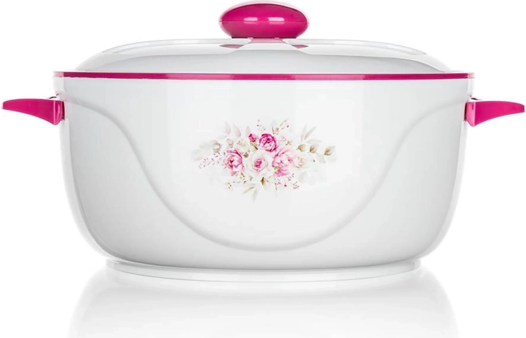 Velegnet til familiefrokoster, grill, fester og til daglig servering – holder supper, tilbehør og kød varme i længere tid samt salater og desserter behageligt kolde. Det elegante design med blomstermotiv og rosa detaljer passer ind i ethvert køkken.