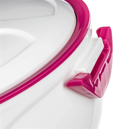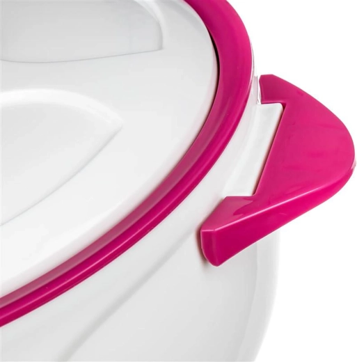 Termoskålen ROSE 1,5 l er den ideelle hjælper til servering og transport af færdige måltider. Den indvendige rustfri skål sikrer hygiejne og nem rengøring, mens PUR-skum mellem væggene giver fremragende termisk isolering. Takket være de nedklappelige håndtag og det tætsluttende låg er den nem at transportere og holder madens temperatur rigtig godt.