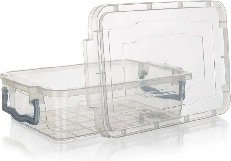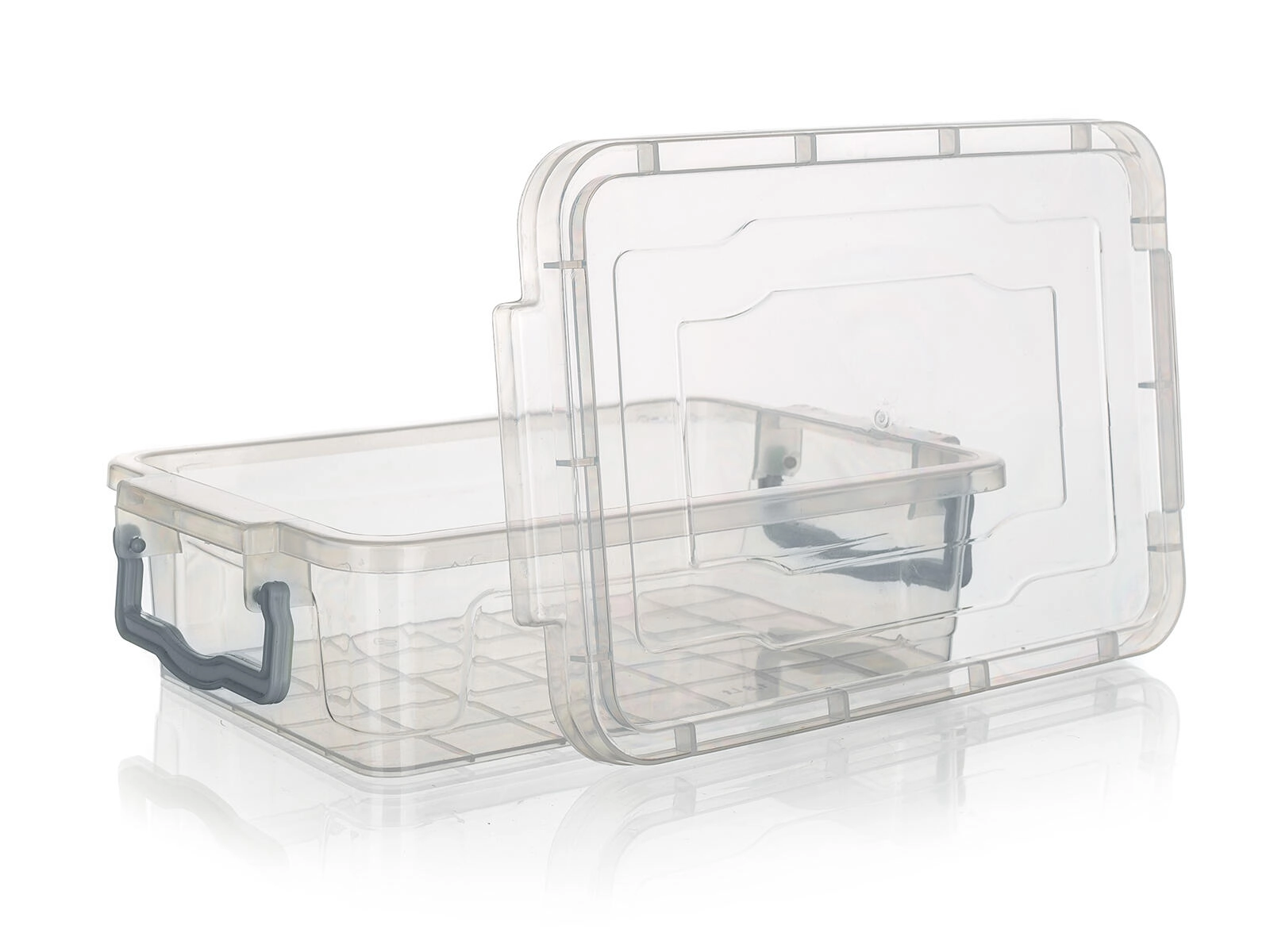 Den rektangulære Gema-beholder giver pålidelig og hygiejnisk opbevaring af råvarer, færdigretter og snacks. Takket være den gennemsigtige plast kan du altid se, hvad der er indeni, og de praktiske turkise håndtag gør håndtering og transport nemmere.